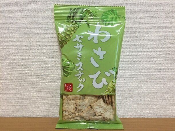 「わさびセサミスナック」(購入時:119円)は手頃な価格で食べ切りサイズのスナックです。