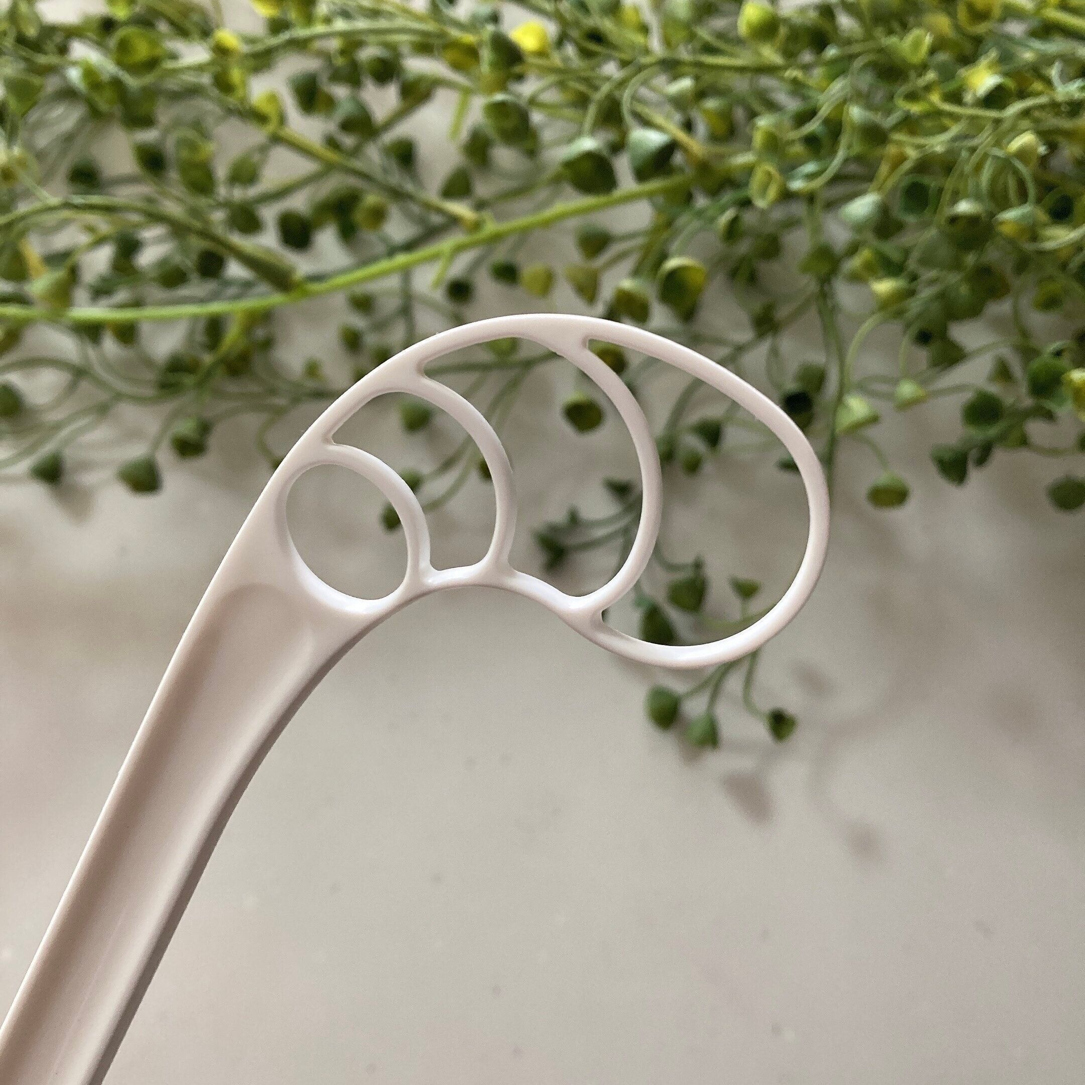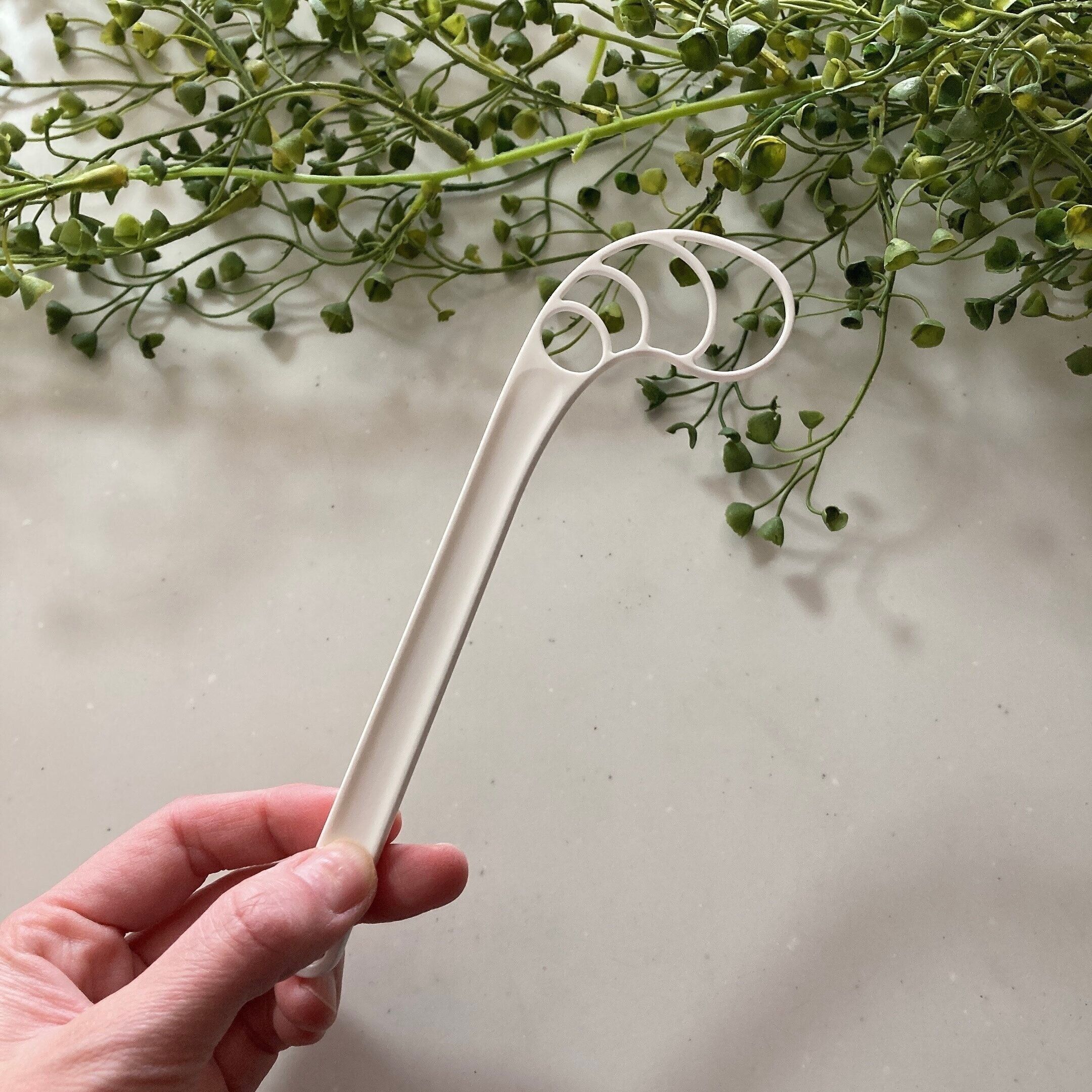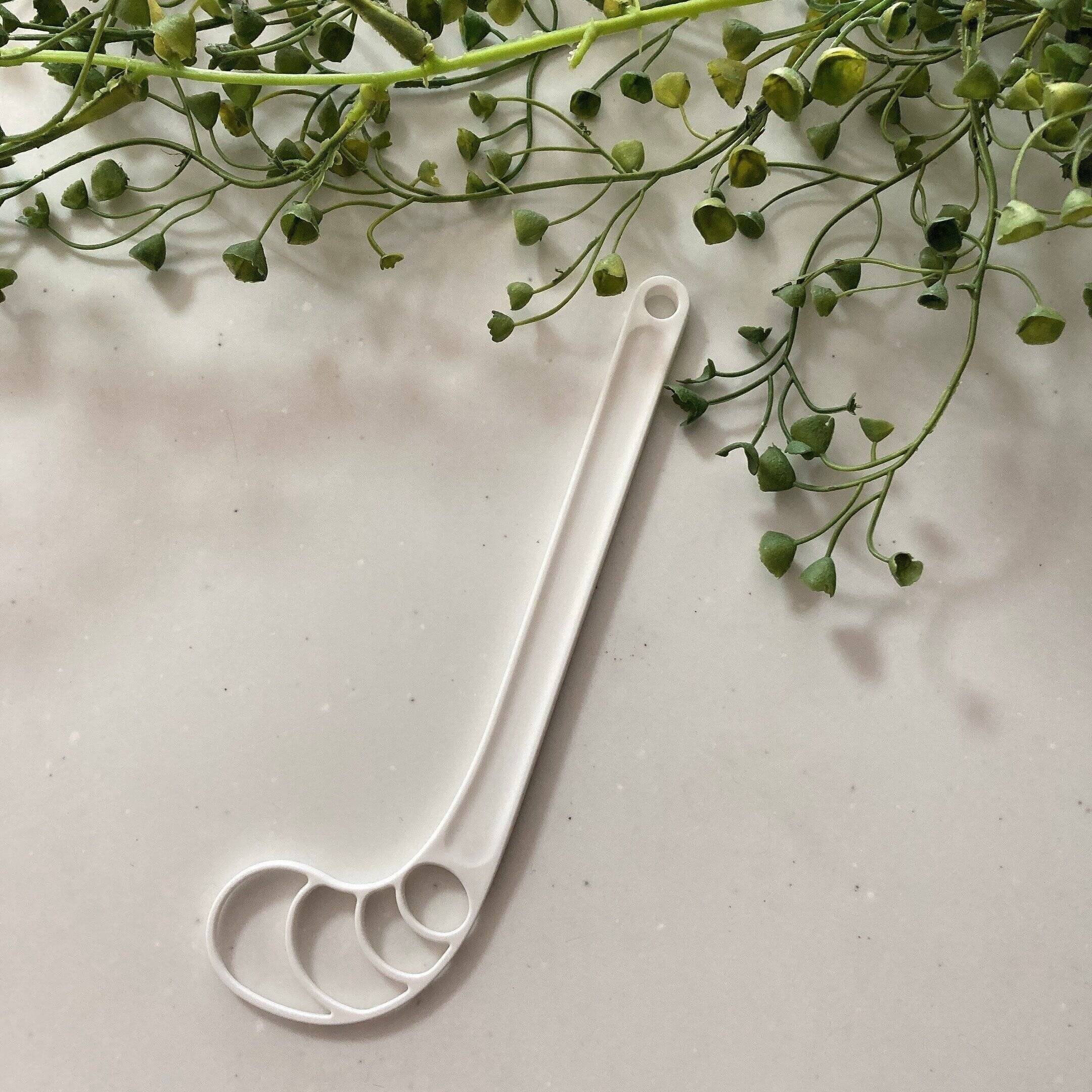 真っ白でプラスチック製のスティックです。「これがキッチングッズなの⁉︎」って思う不思議な形だけれどいい仕事をしてくれます。
