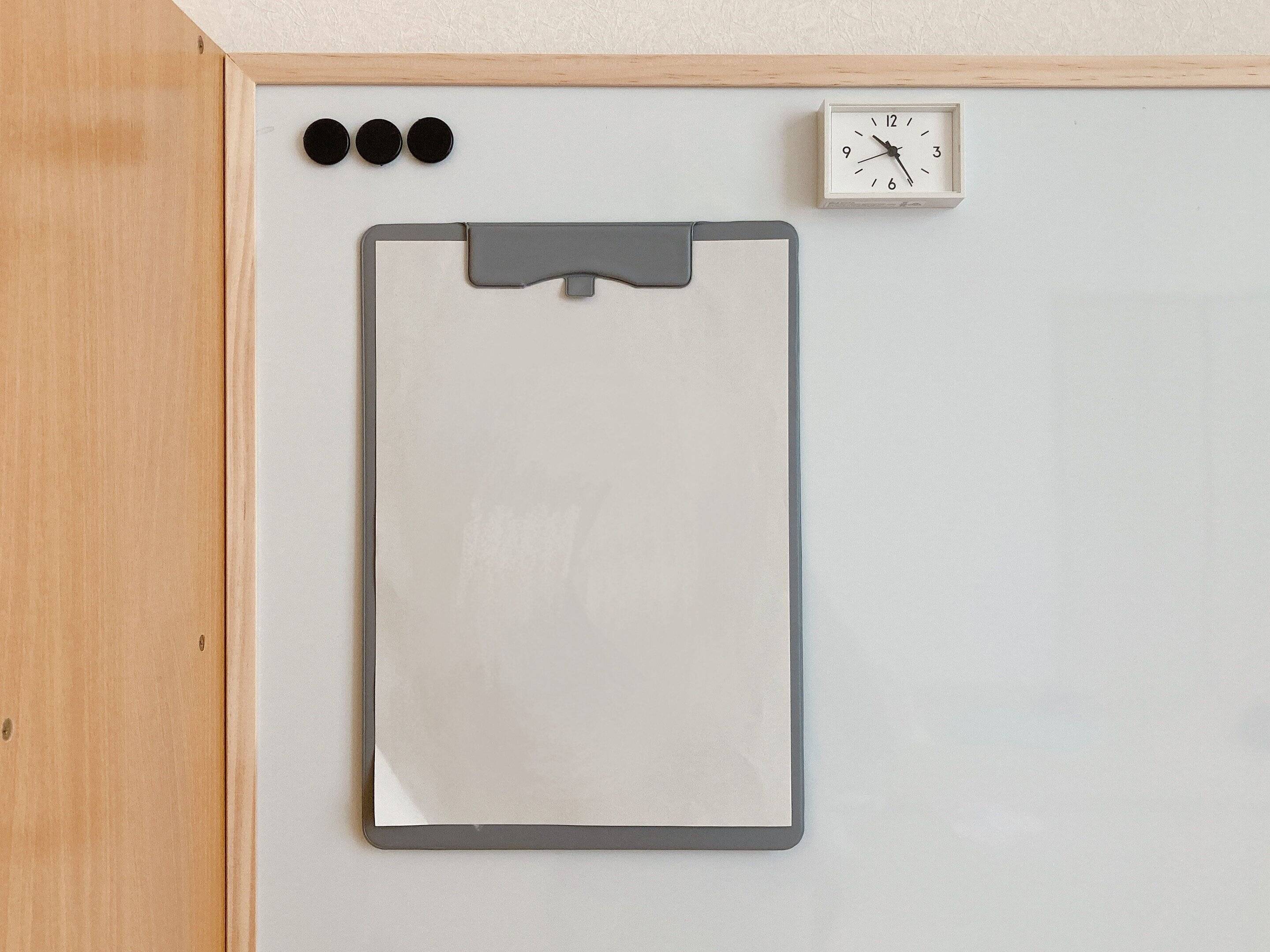 この「クリップボード」は冷蔵庫やホワイトボードに貼れるのがポイント。わが家のように冷蔵庫に行事予定を貼っているご家庭は多いと思います。ごちゃつきがちな冷蔵庫まわりもスッキリ見えるのです。