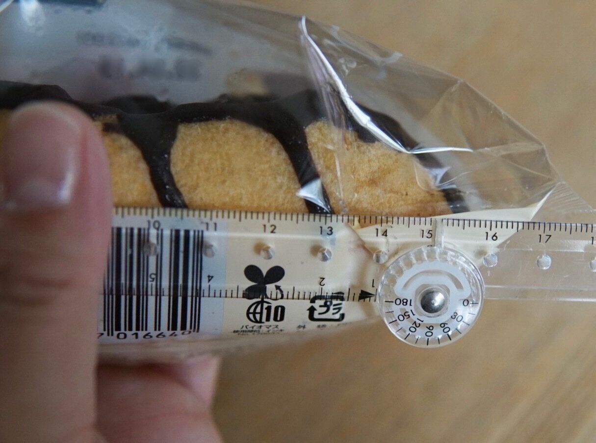 食べる前に気になったのがそのフォルム。よく見かけるエクレアよりも少し細く、そして長い。測ってみたら16cmほどありました。口が小さなお子様や女性でも食べやすく、かぶりついたときにチョコが口の周りにつきにくいのはありがたいなと感じました。