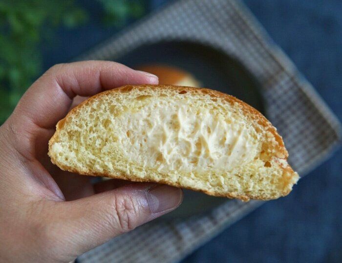 卵をしっかりと感じられるように低温でじっくりと炊き上げたカスタードに、コクと乳味感のある北海道産生クリーム、そして隠し味にブランデーが加えられています。味の深みを出すために一役かっているかもしれませんが、食べてみてもブランデーっぽい感じはしませんし、お子様に対する注意喚起表記もありません。