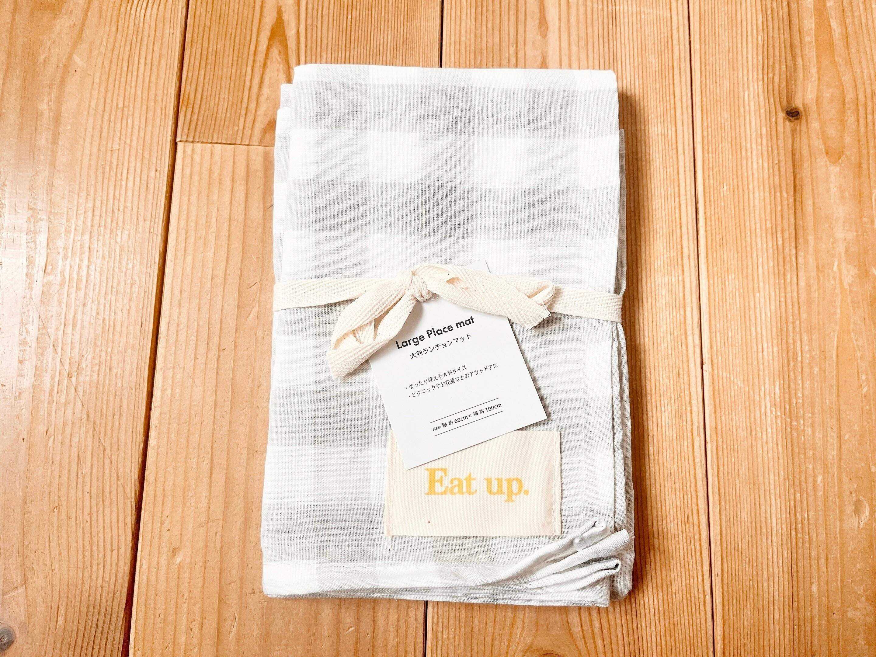 こちらの大判ランチョンマットはベージュではなく、ナチュラルなライトグレーのチェック柄。