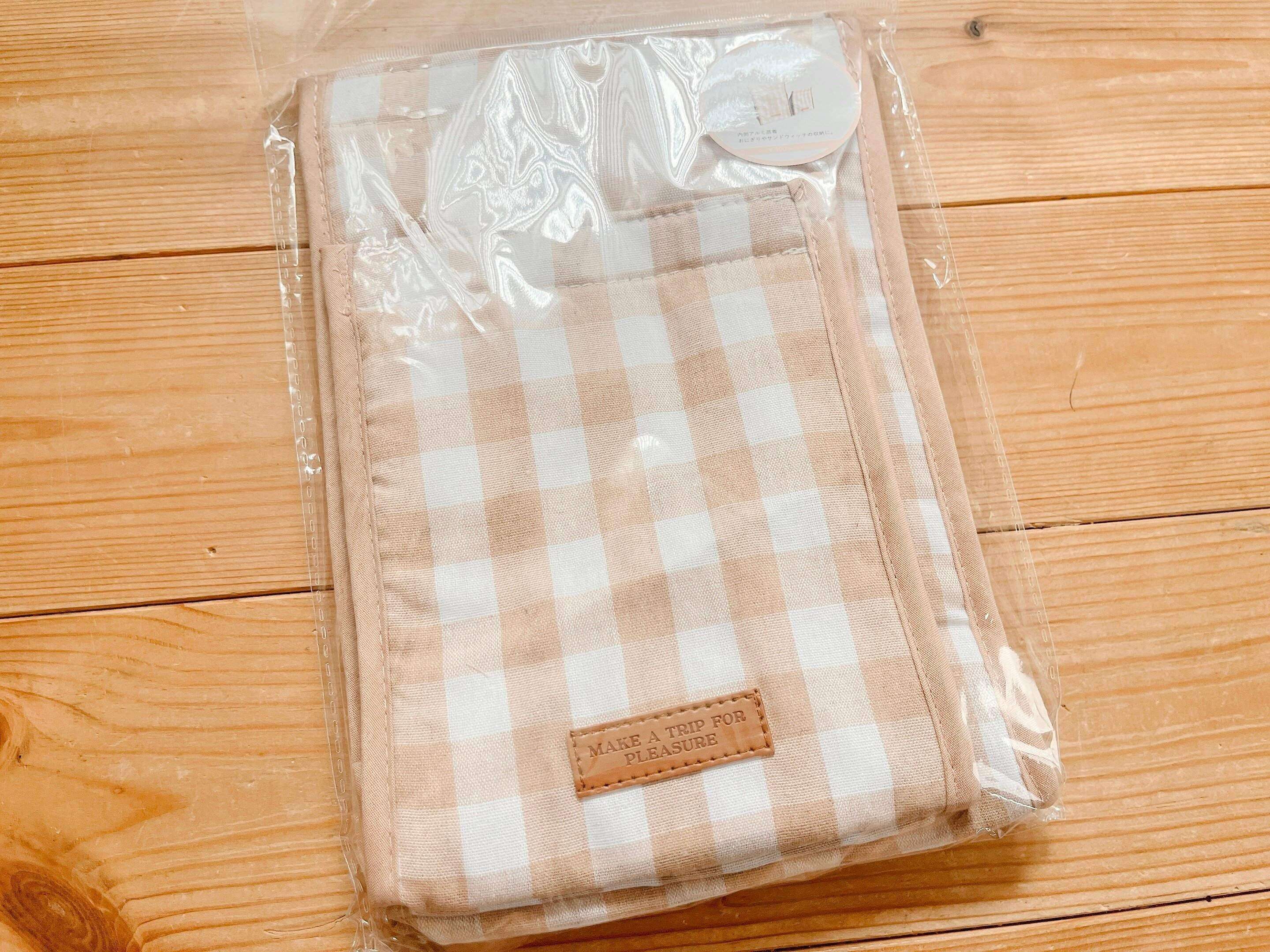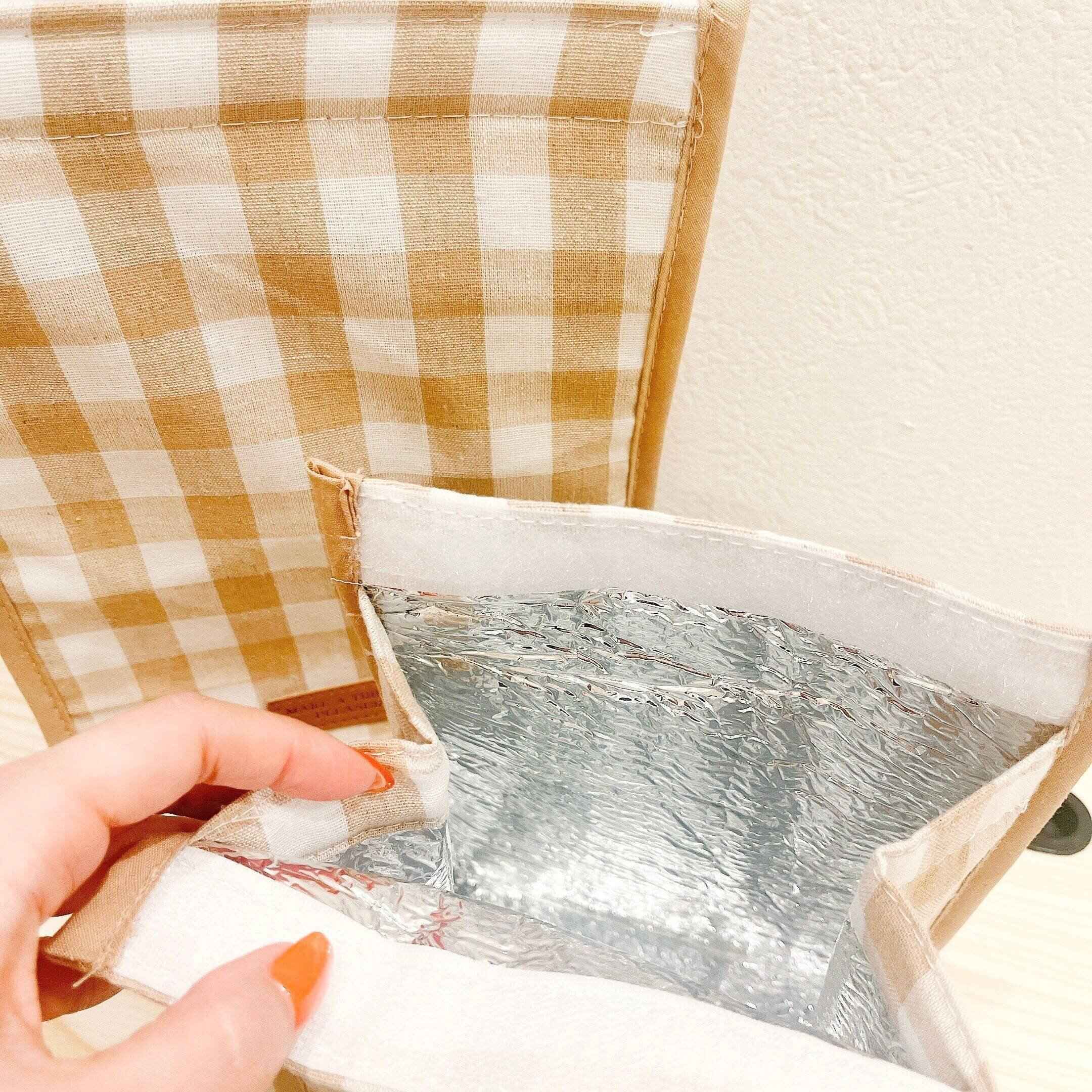 レジャーシートと同じナチュラルなベージュのチェック柄の保冷バッグ。