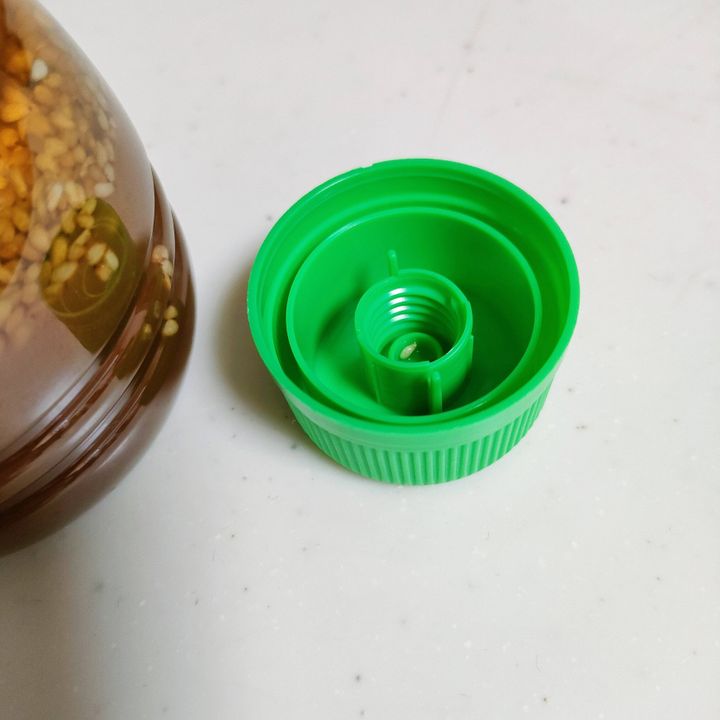 しっかり振ってからつかうタイプのドレッシングなので、これでストレスフリーですね。