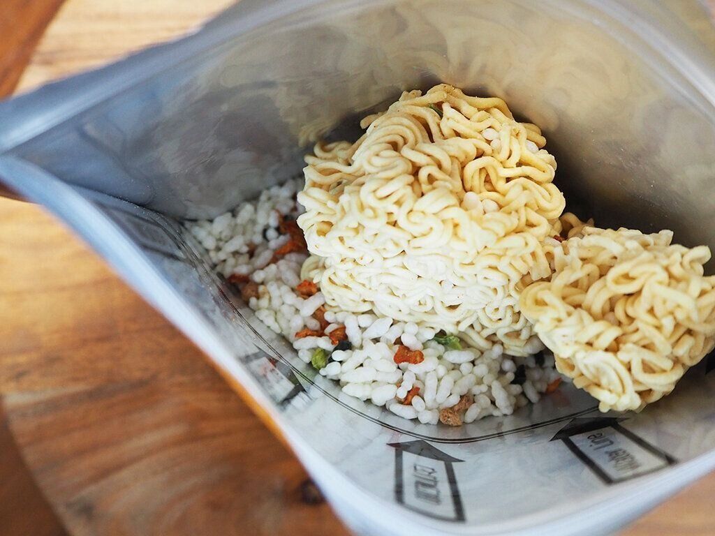 袋の中に直接お湯を入れて食べるとのこと。