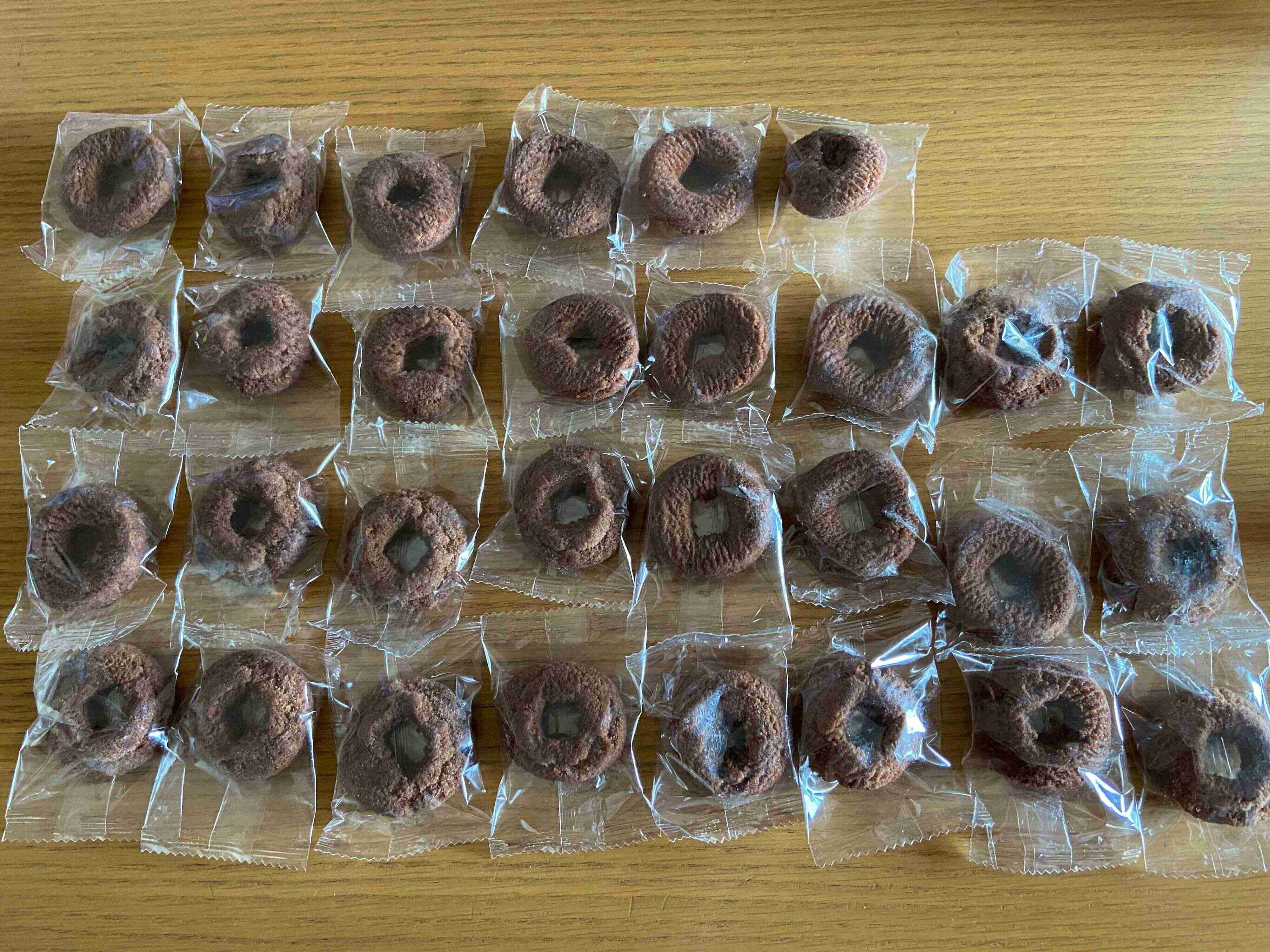 袋を開けると個包装のヤングドーナツチョコ味が30個入り!
