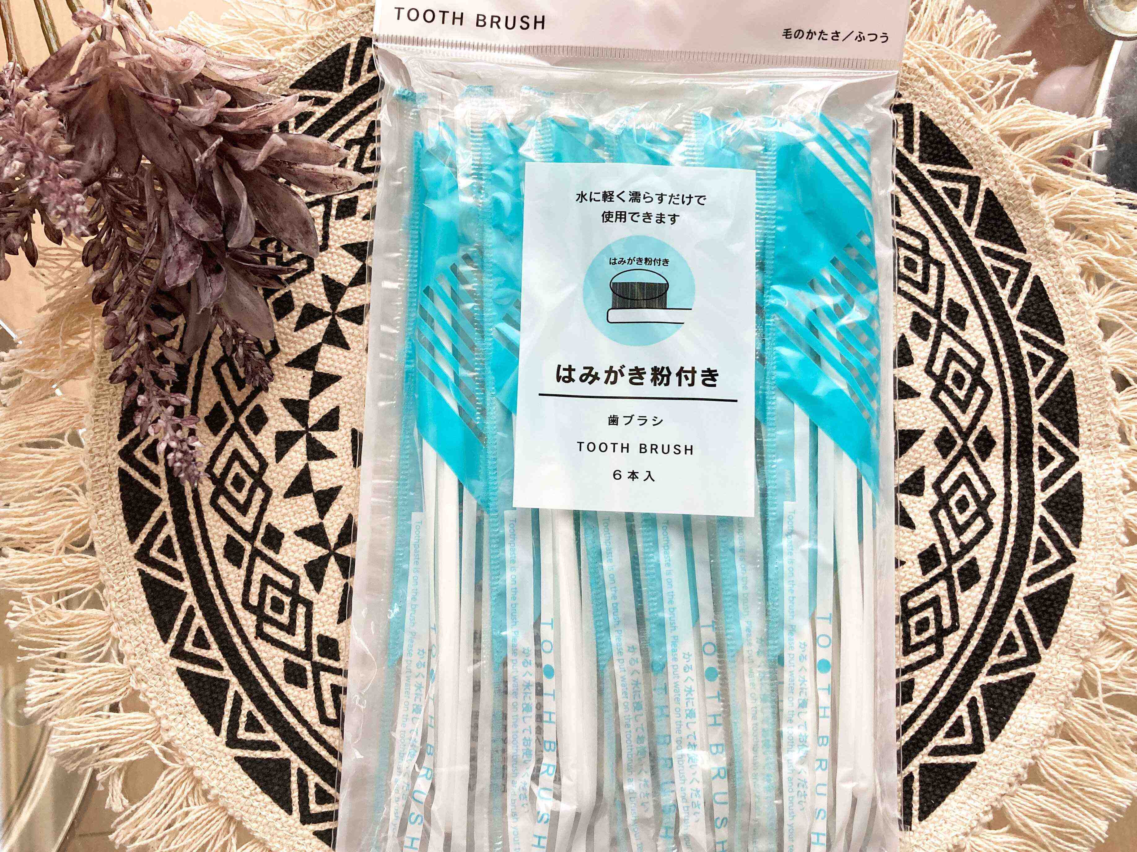 セリアで見つけた「はみがき粉付き歯ブラシ」なら、はみがき粉がブラシ部分についているので、軽く水にぬらすだけで簡単に使用できてとても便利です。