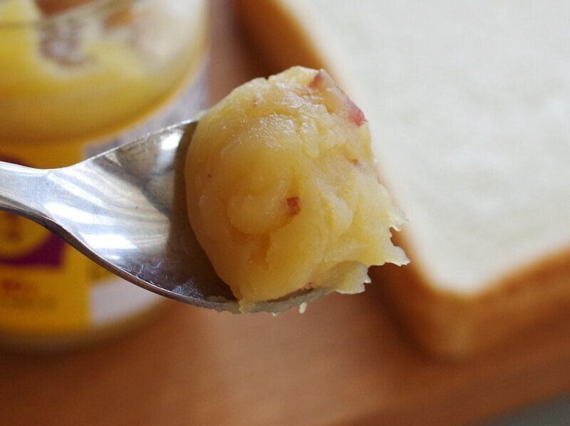 やわらかめのペーストです。なかには、金時いもの皮ごと入っているんです!クリーミィかつ、甘さ控えめなので、パンのほか、ホットケーキのトッピングやバニラアイスに乗せて食べるのにもよさそうです!