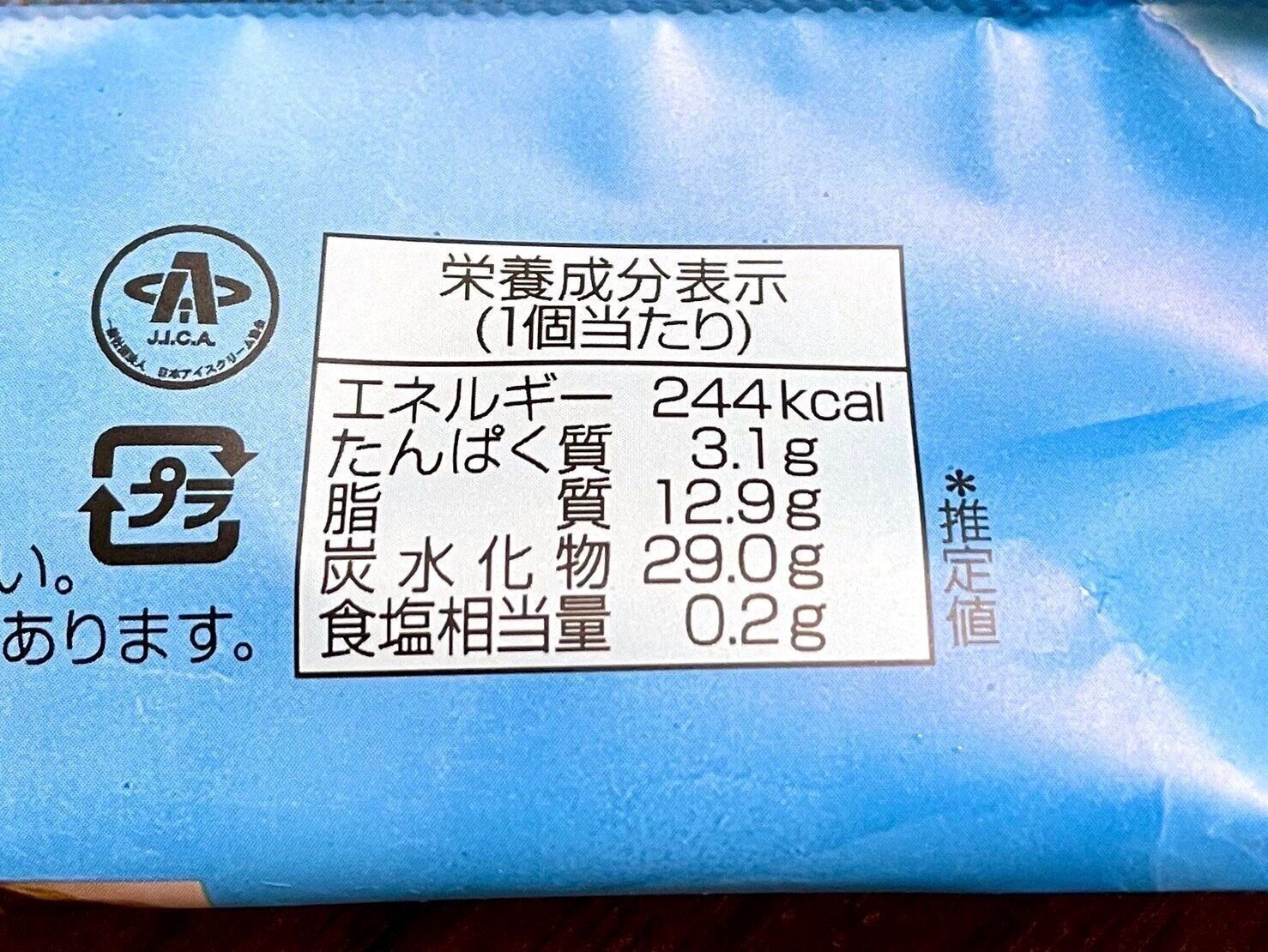 1つあたり244kcalとおやつにひとつ食べるカロリーとしては、個人的に少し高めに感じます。