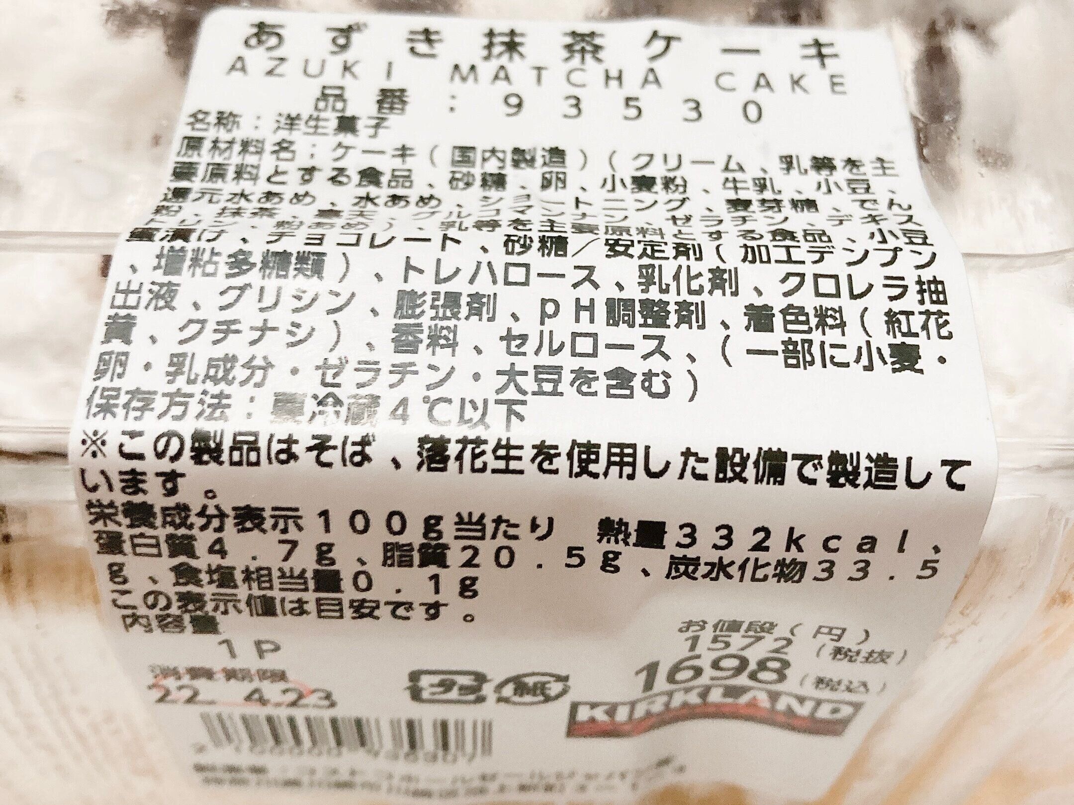 商品名:あずき抹茶ケーキ