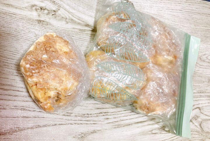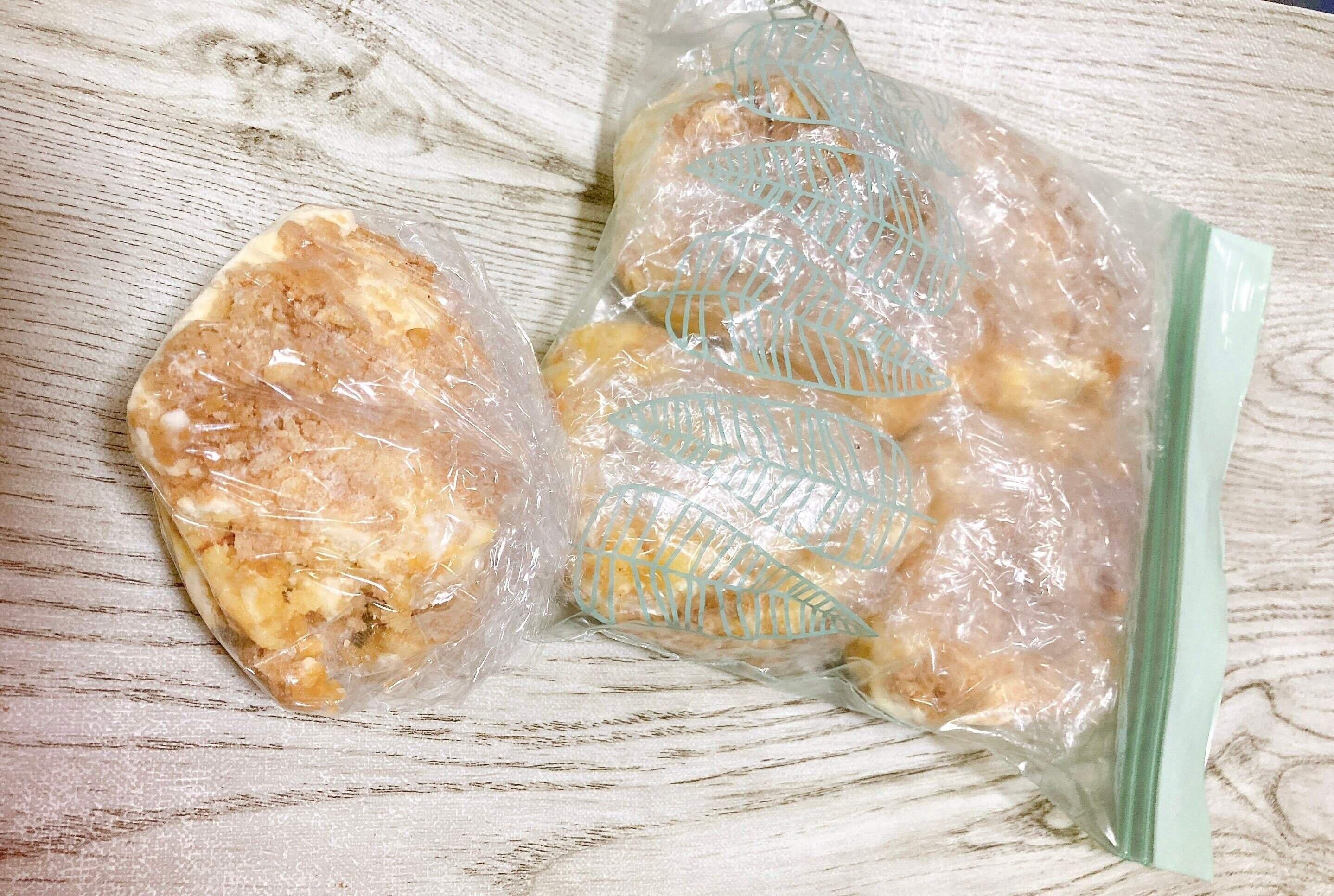 食べたい大きさにカットし、ラップして冷凍保存袋に入れ冷凍庫へ。