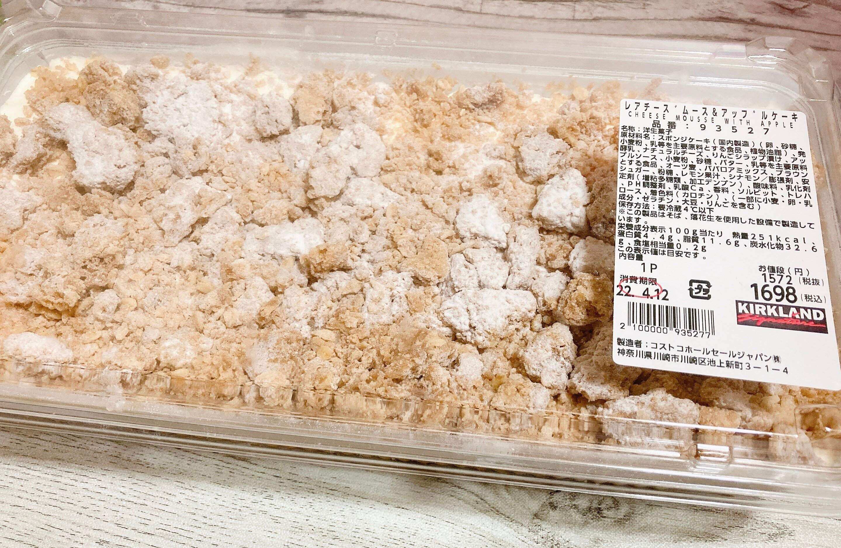フタを開けた瞬間はシナモンが香るので、クセが強いケーキかと思いましたがクランブルにほんのり香る程度で、アップルパイとチーズケーキを一緒に食べているかのようなコストコらしい味でした。
