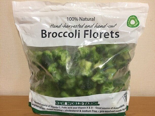 コストコユーザーの間で人気の冷凍野菜「NEW WORLD FARMS 冷凍ブロッコリー」(購入時:879円)。カット済みなので手間がかからず、使いたい時に使いたい分をすぐ取り出せて便利。