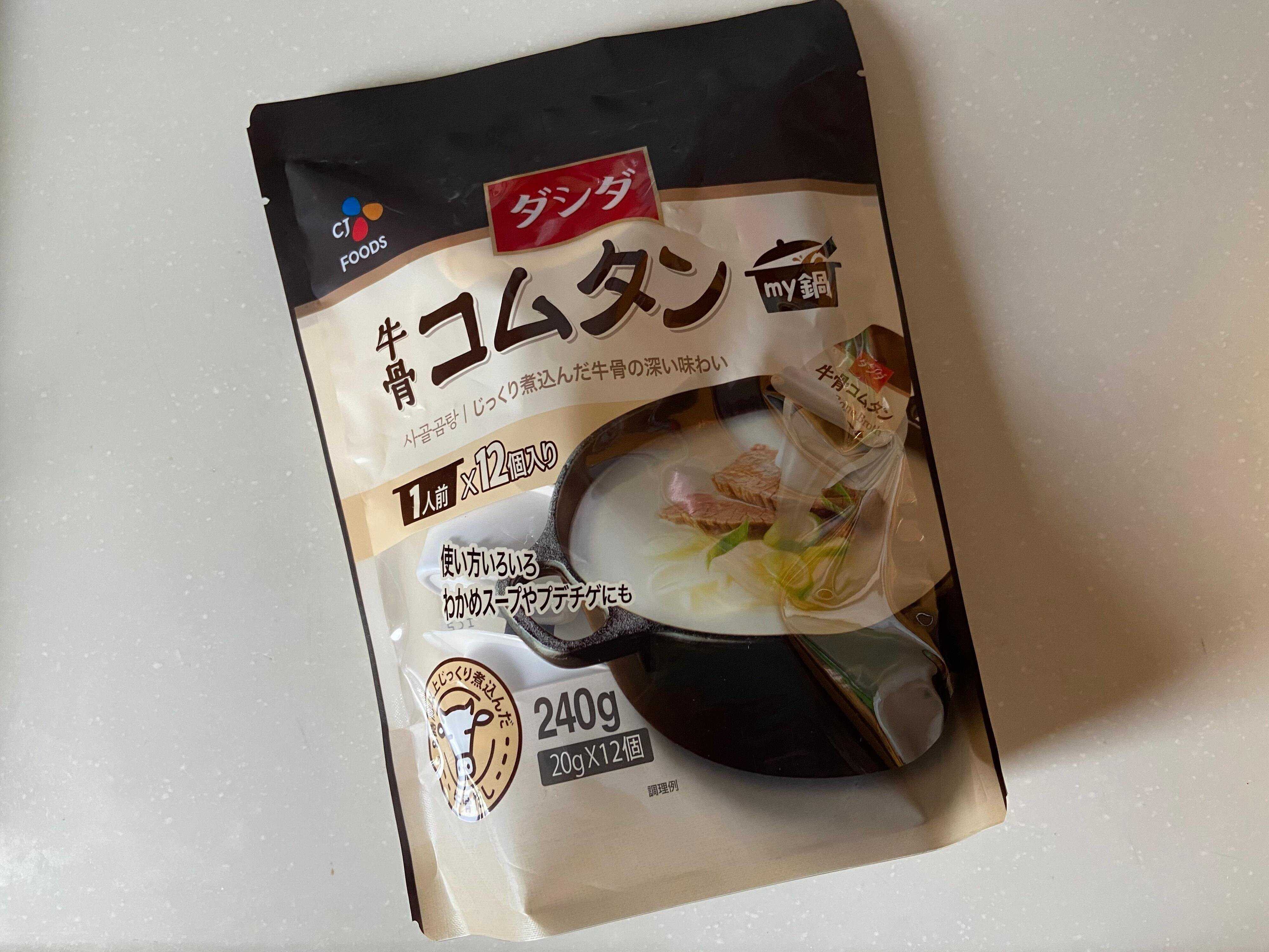つづいて筆者が何度もリピートしているおすすめ商品「牛骨コムタン」(購入時:788円)。韓国料理のコムタンスープを簡単に作れるポーションタイプのスープの素です。