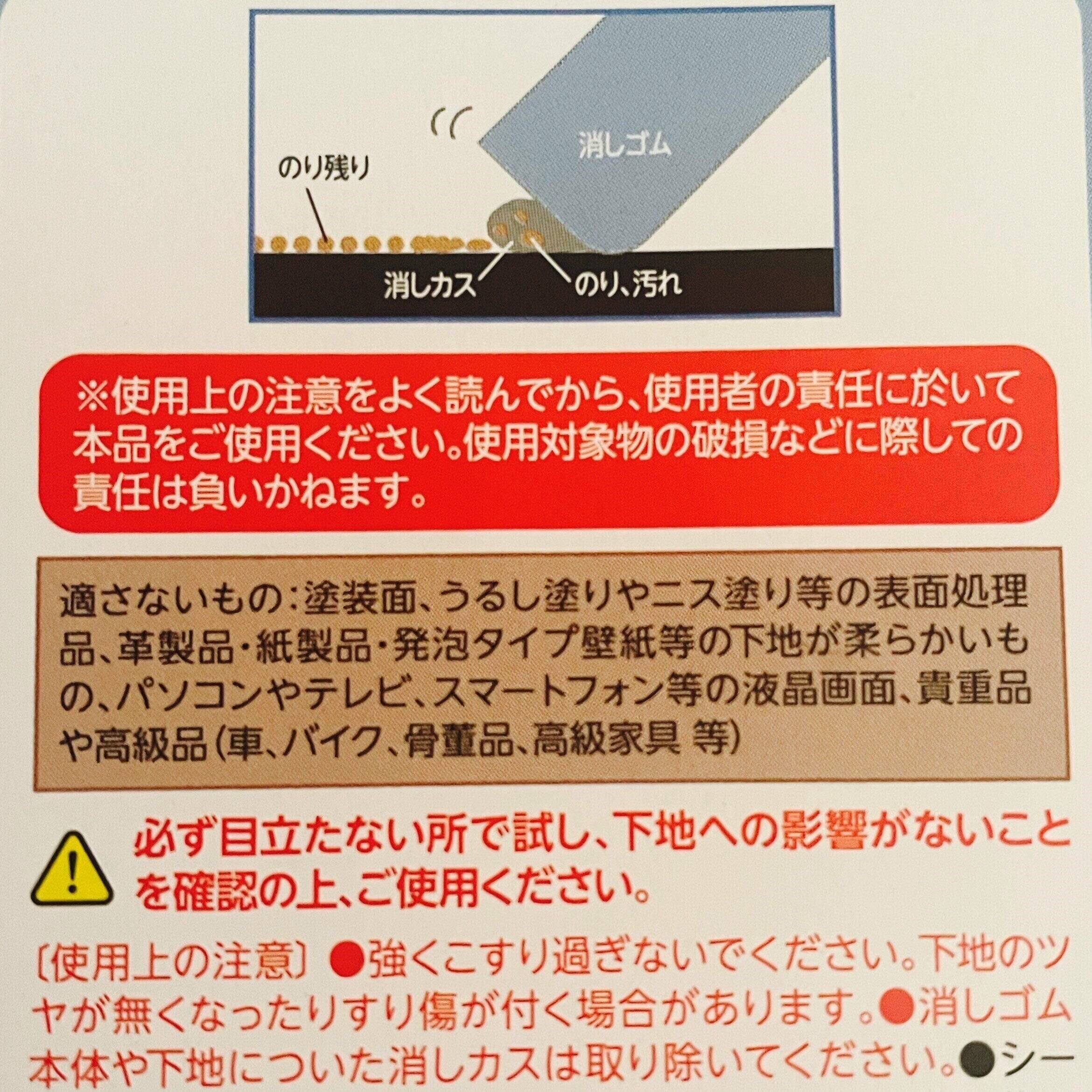 消しゴムでコスることで消しゴムがのり残りを取り込んで消しカスとして取り除いてくれるようです。