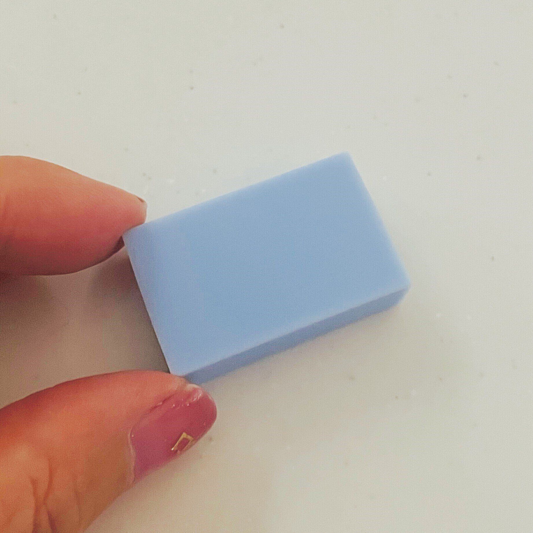 ブルーカラーが爽やかで一見すると普通の字消し用消しゴムに見えます。
