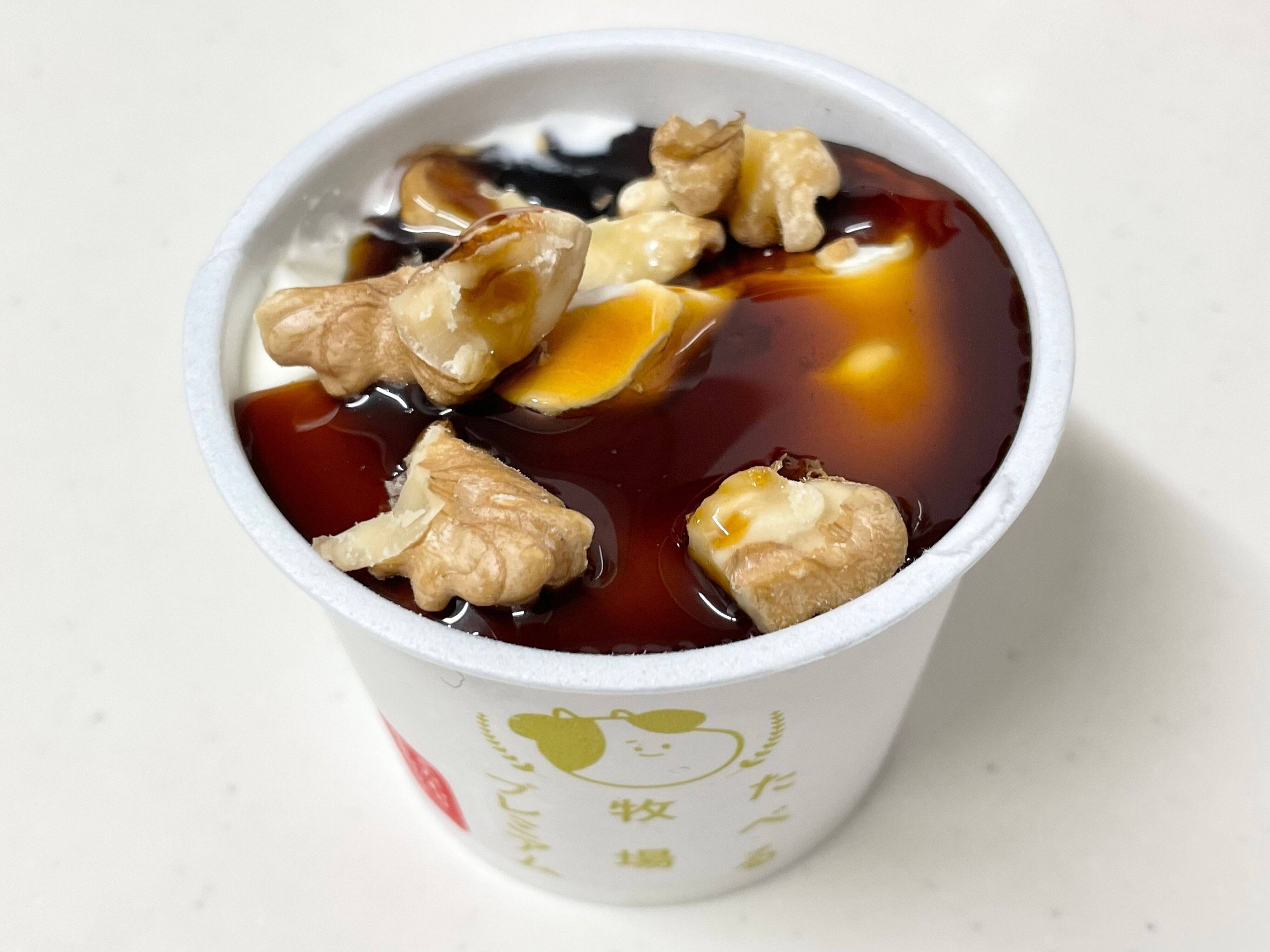 そのままでも十分おいしいですが、黒蜜かけてくるみをのせました。シンプルなのでアレンジもよく合う〜。ミルクが甘すぎないのでケンカしません。きな粉やあんこを添えたらおうちでお店のような味が楽しめますね。