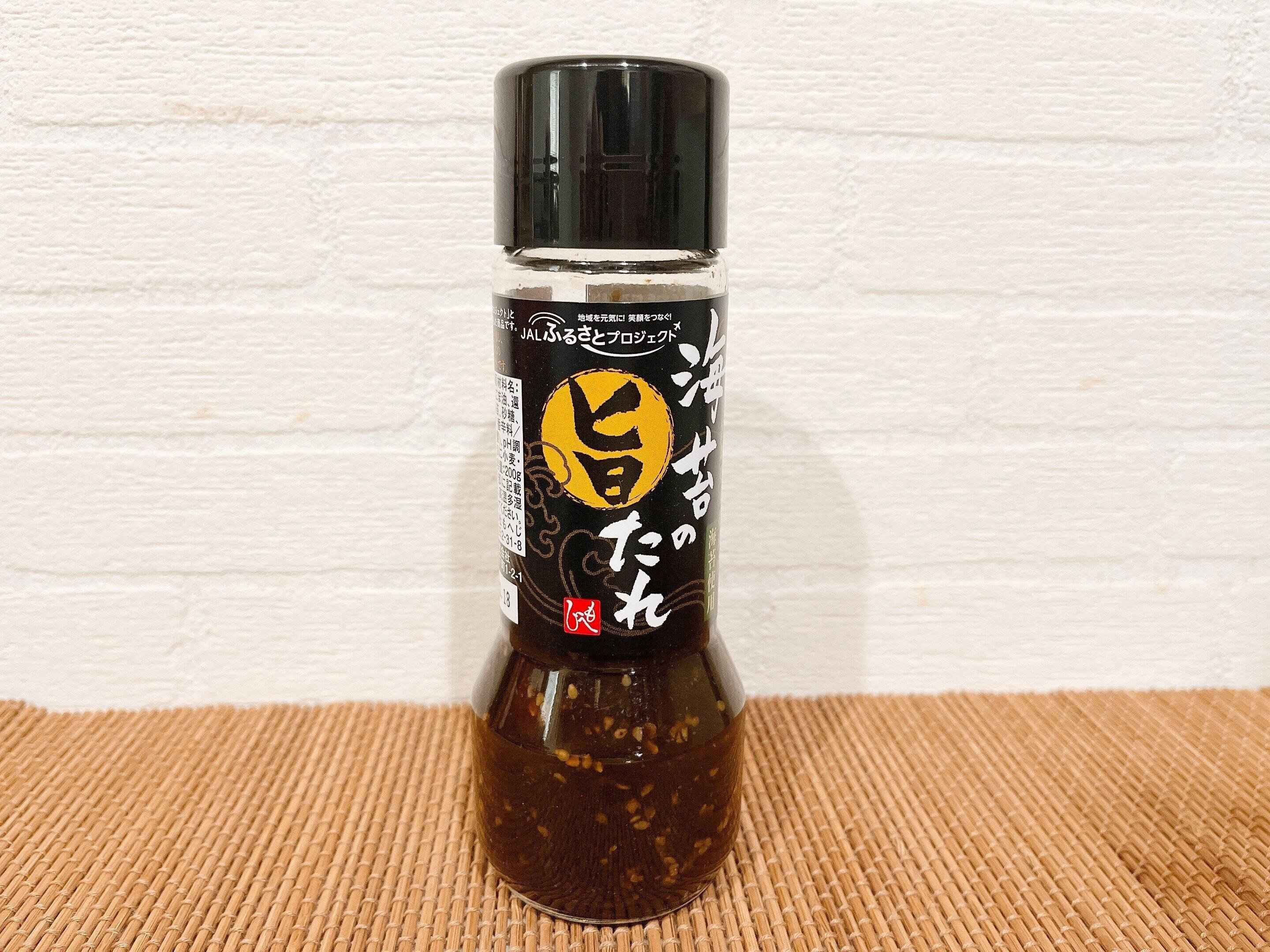 宮城県東松島産の海苔を使用した、しょうゆベースの万能たれで香り高い海苔の風味とにんにくの旨味が食欲をそそり、サラダだけでなく和風パスタなどの味付けにもピッタリなんだそうです!