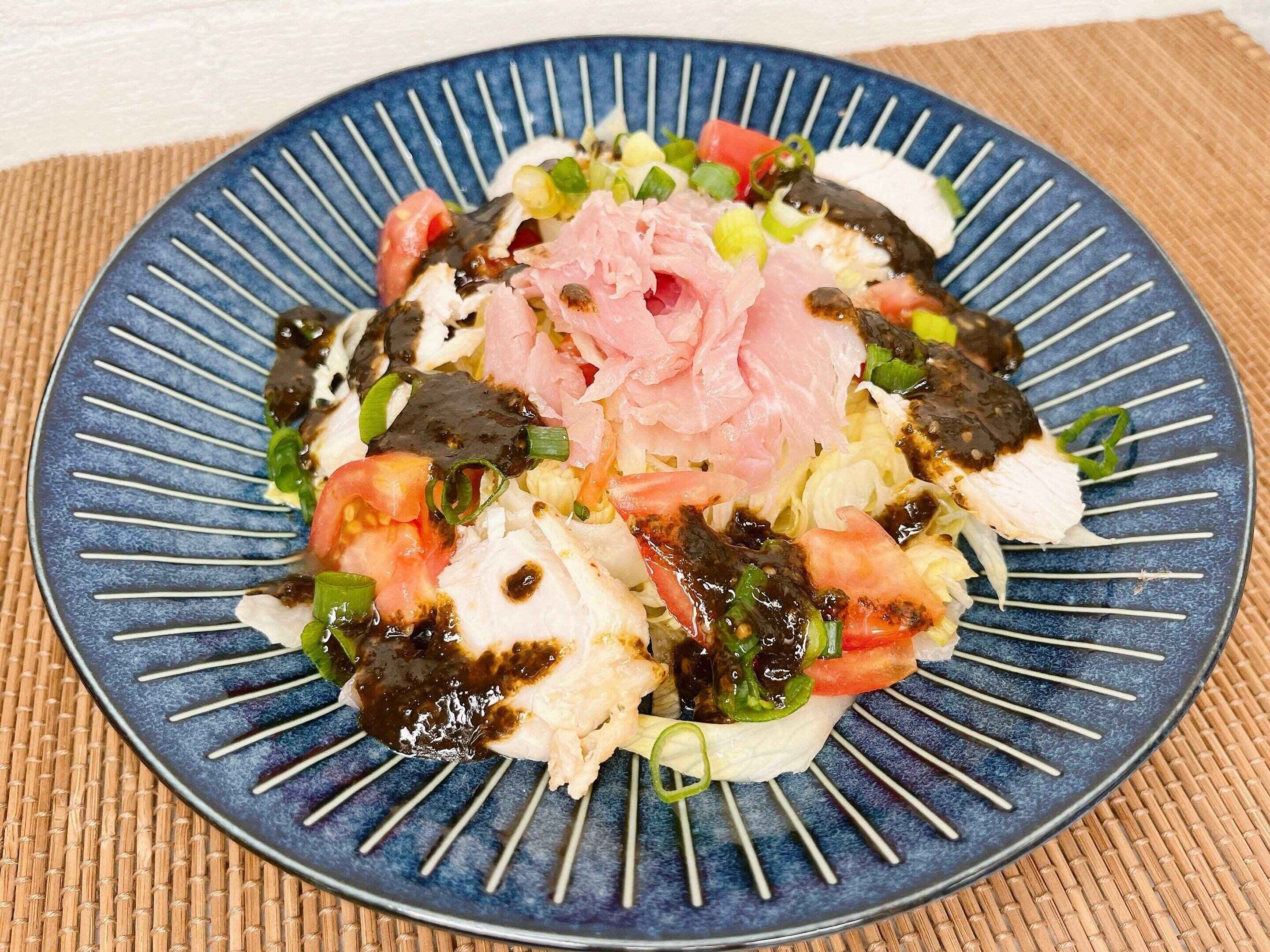 ごま油の風味が強いので、サラダにかけると海苔味のチョレギサラダの様な感覚で、更に醤油ベースと海苔で和風っぽくなりとっても美味しいです。