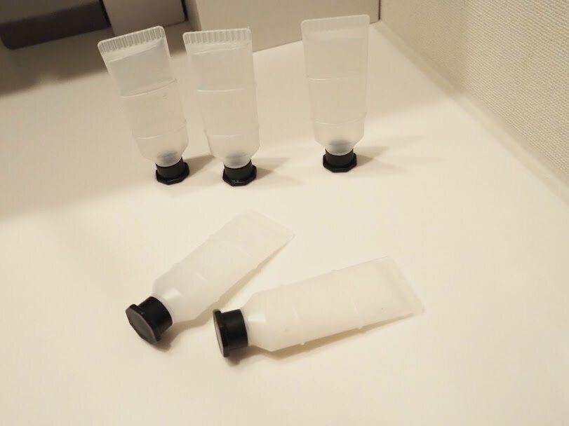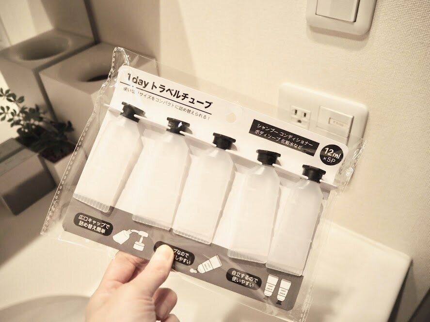 旅館やホテルにアメニティはおいてあるけど、肌に合うか不安で、普段愛用のシャンプーやボディソープを、ボトルに詰め替えて持っていくかたは多いと思います。詰め替えボトルって意外と容量が大きいんですよね。もう少し容量が小さいのがあれば。って思ったことありませんか?100円ショップのキャンドゥで容量12mlのコンパクトサイズが売っているんです。