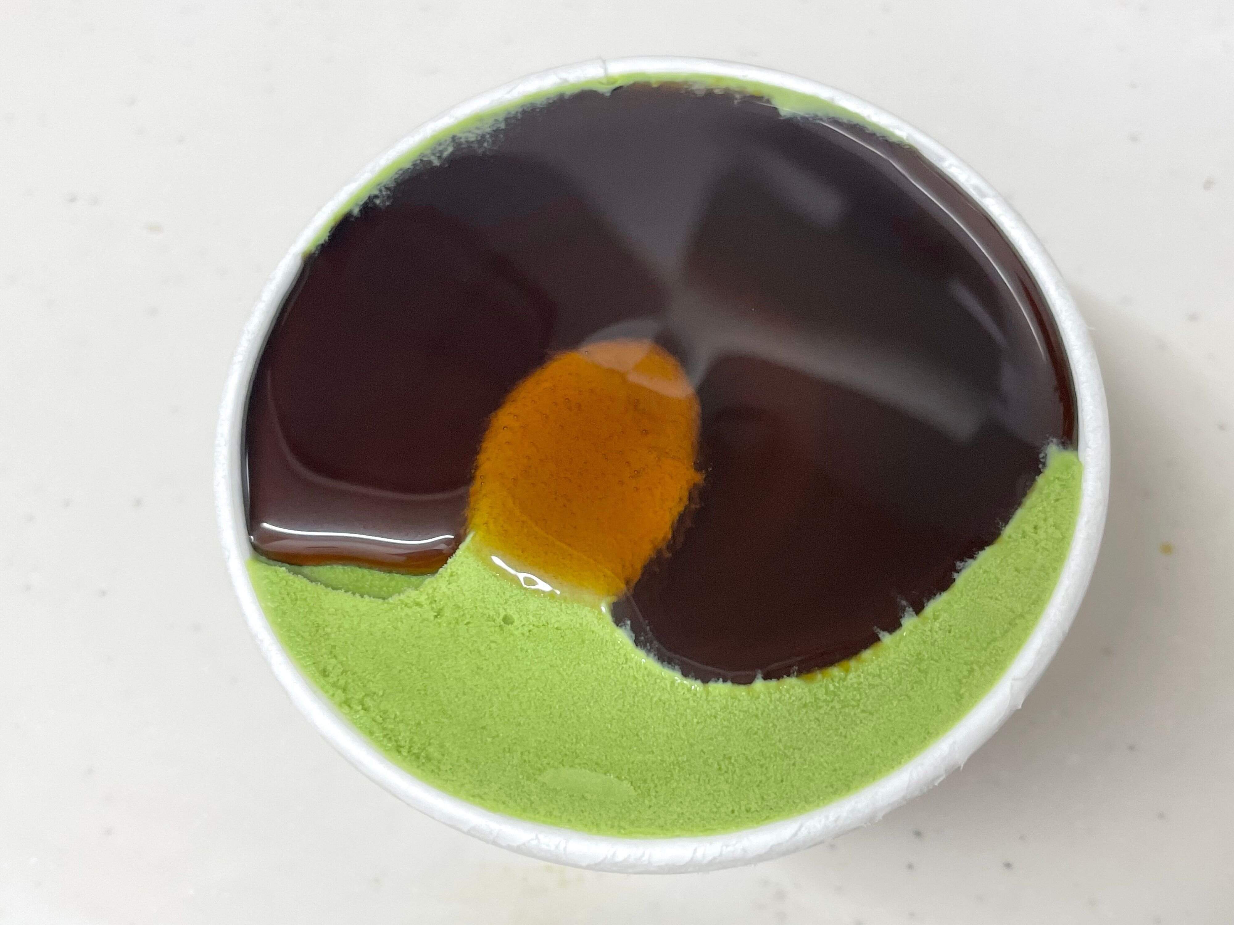 抹茶アイスの苦みと渋みが黒糖みつの甘さを抑えてくれてちょうどいいバランスに。