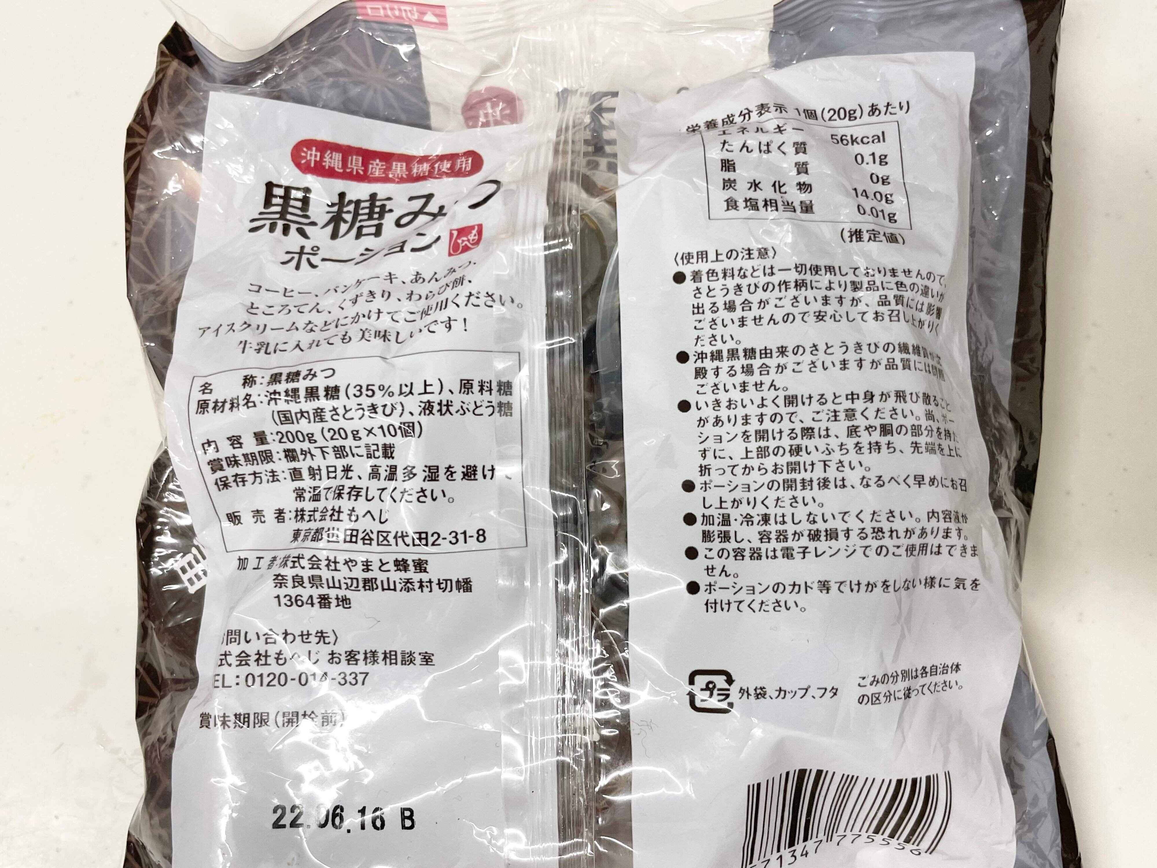 そこで見つけたのが、「黒糖みつ ポーション」。使い切りの黒糖みつなので、衛生的でかけすぎる心配もなし!さっそく購入してみました。