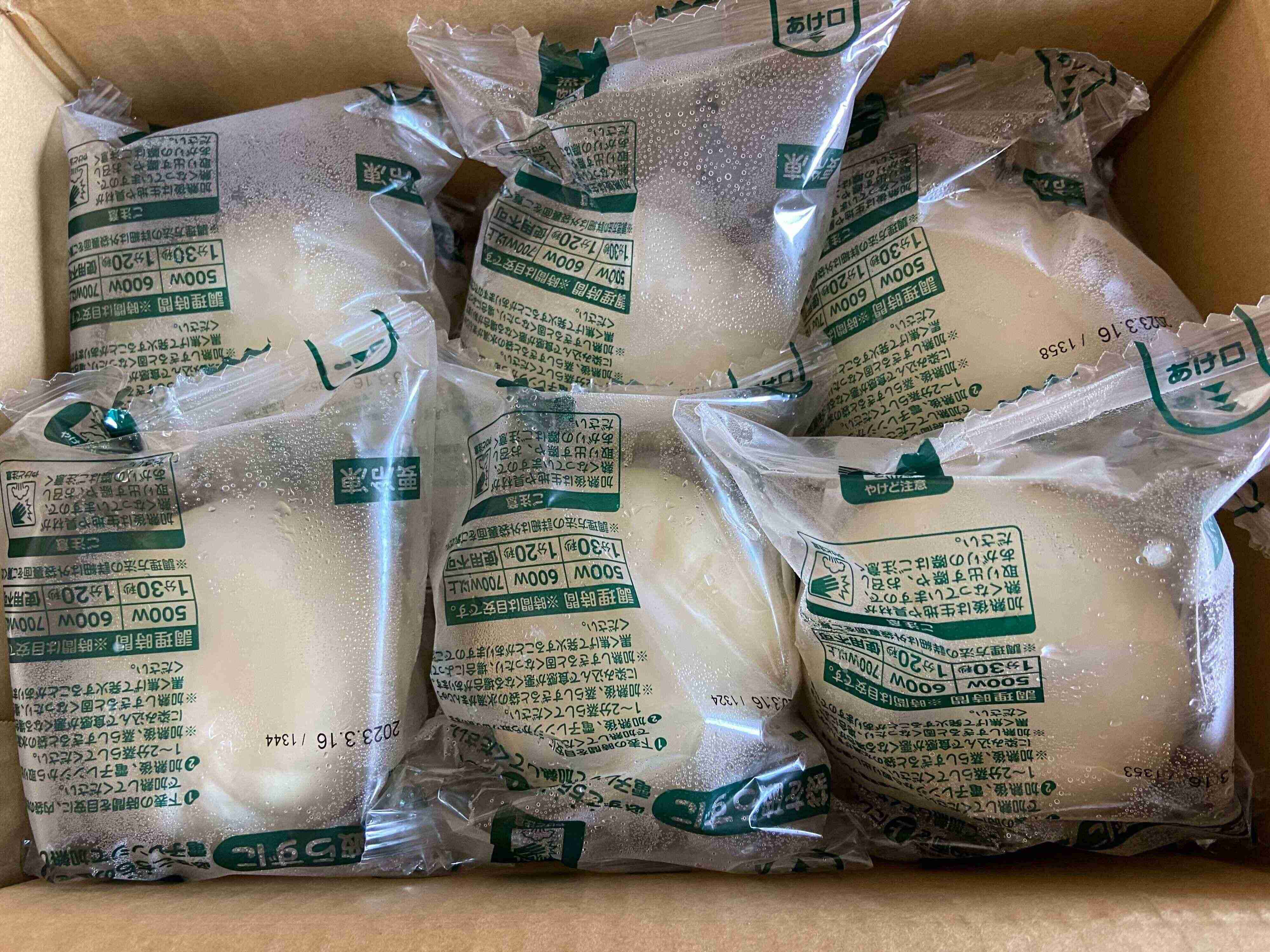 加熱が終わったらすぐに袋を破らずに、そのまま1~2分蒸らしてくださいとのこと。袋が蒸気でパンパンになって熱いので取り出す際は注意が必要です。