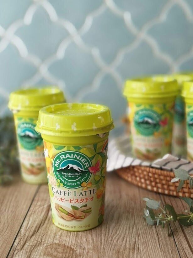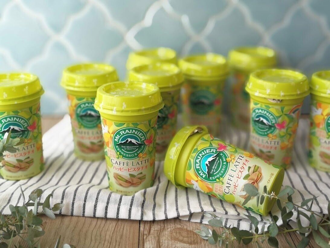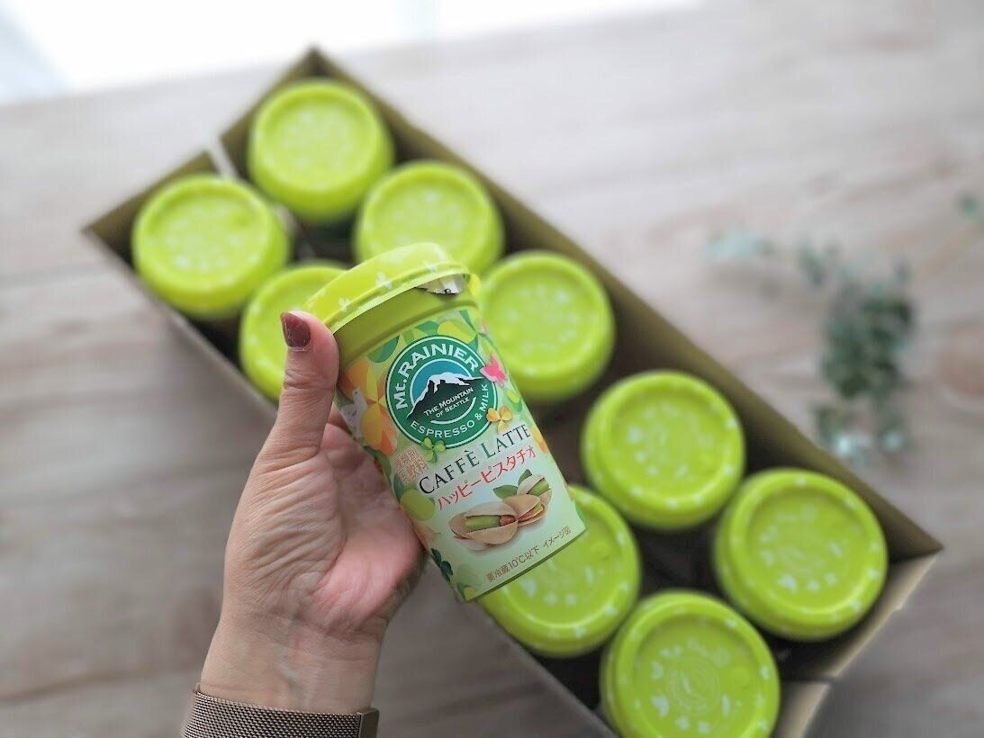今年3月あたりから、『マウントレーニア カフェラテ』の目撃情報が相次ぎ、私も気にしてチェックしていましたが巡り会えず、今回5月に『マウントレーニア ハッピーピスタチオ』の入荷に遭遇する事ができました!