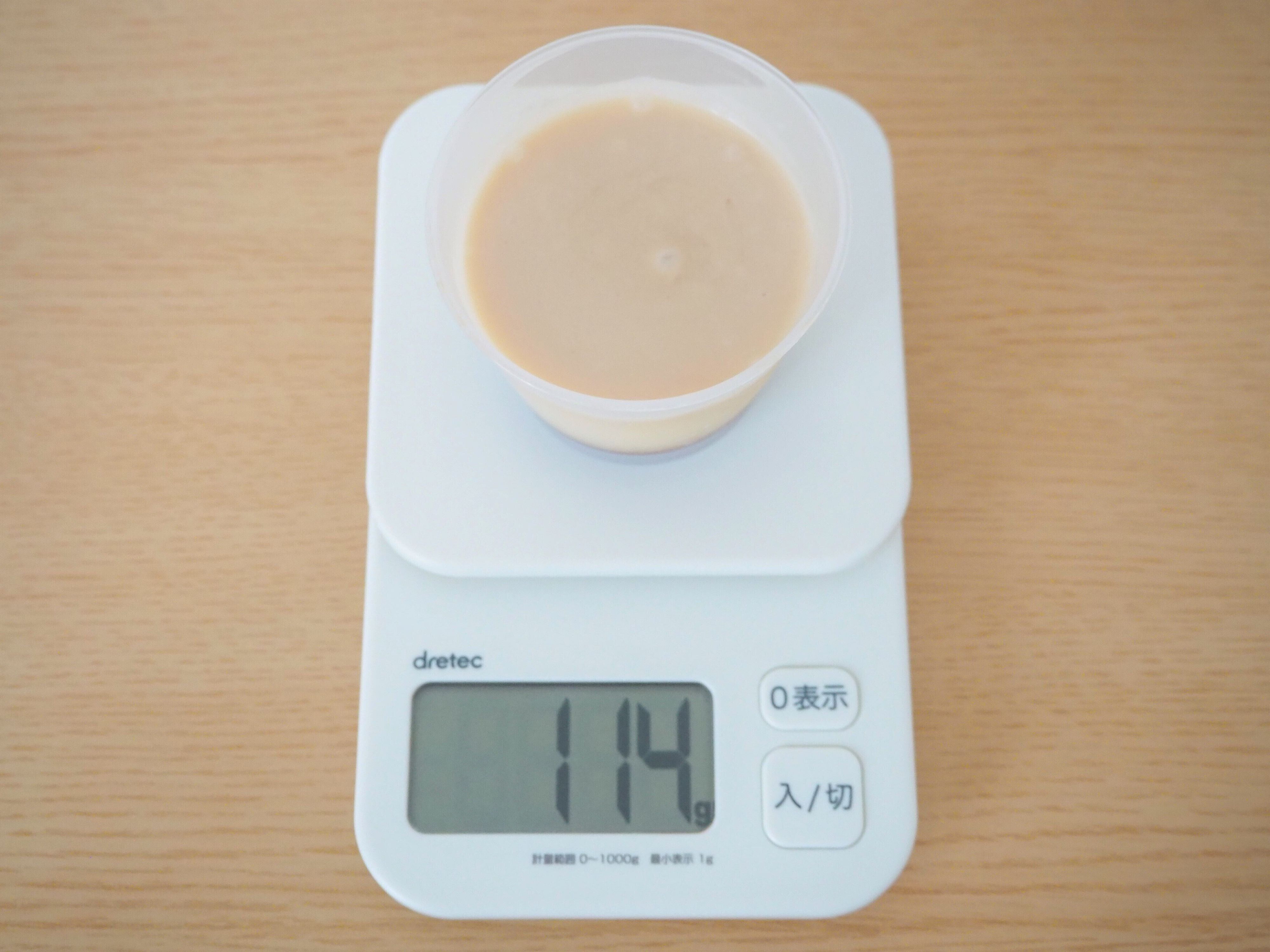 量ってみたところ重さは114g。容器が14gだったので、実際には100gになります。