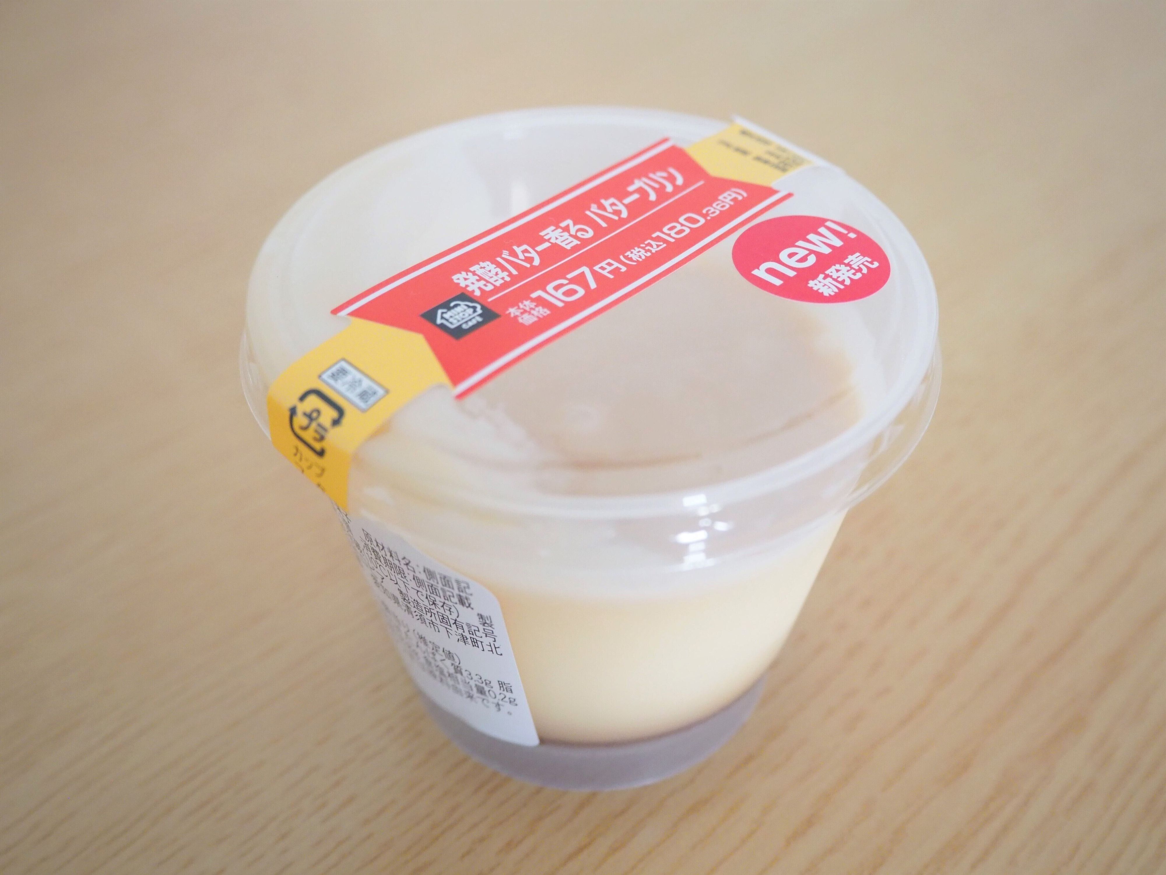 こちらが「発酵バター香る バタープリン」で、価格は180円。バターを作る過程で発酵というひと手間を加えたのが発酵バター。コクや風味が特徴ということで、一般的なプリンよりも深い味わいを楽しめそう!