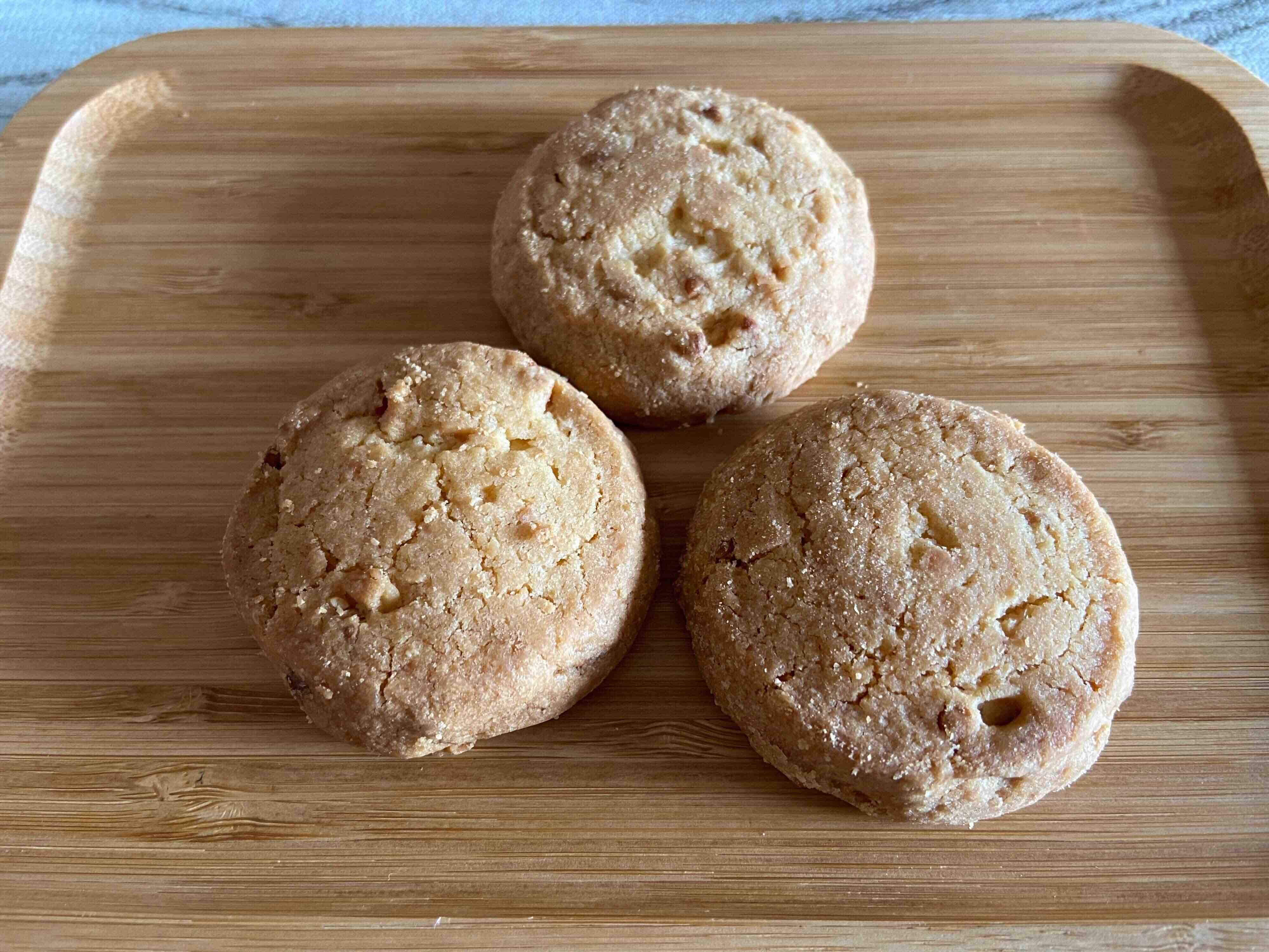 サクサクほろほろっとしてパサつきはなく、バターのコクと旨みたっぷり、なのにしつこさはなくとてもおいしいです。2種類の刻みナッツがカリッと、食感と味に香ばしさがプラスされ、あとをひくおいしさ。