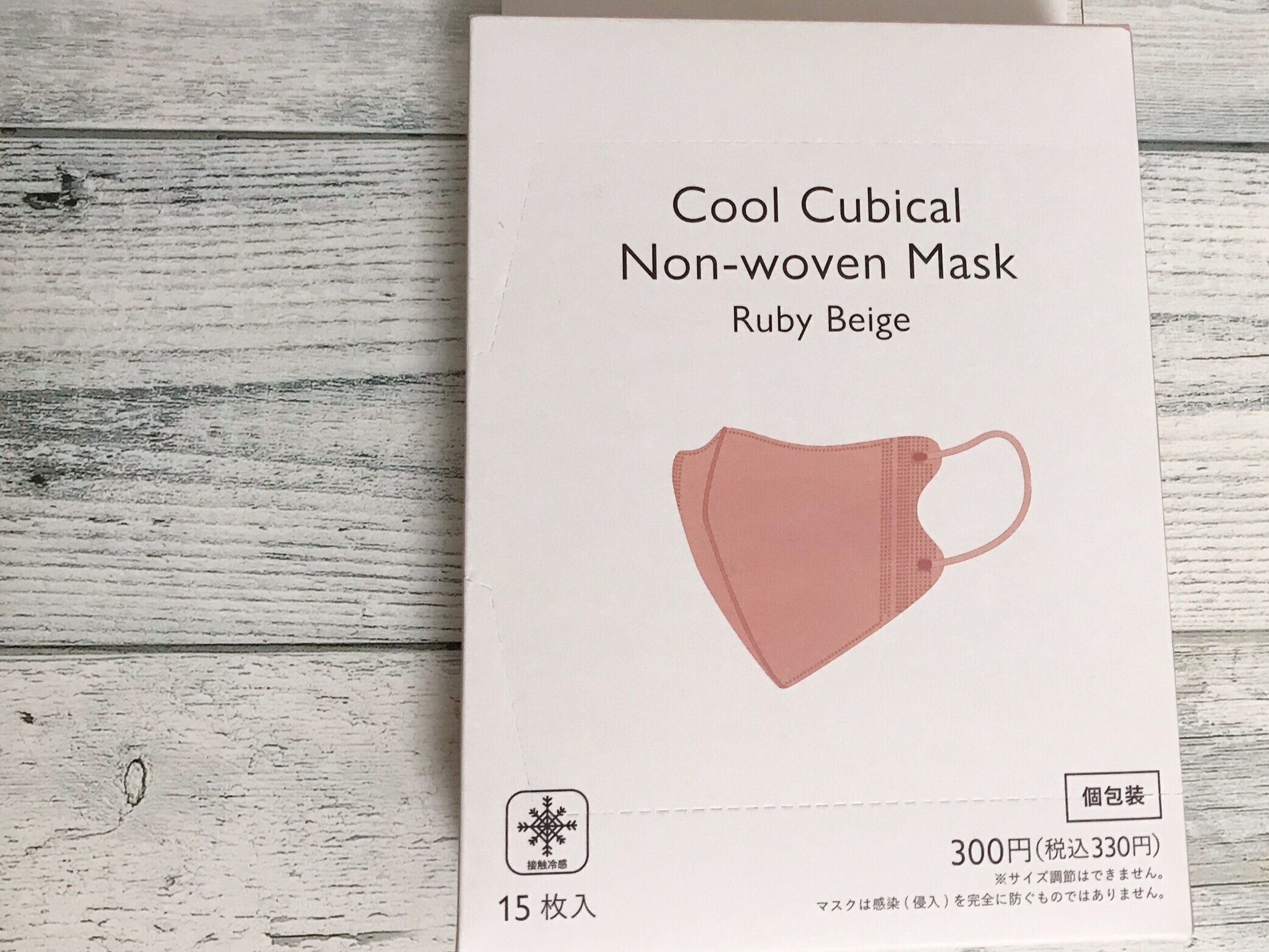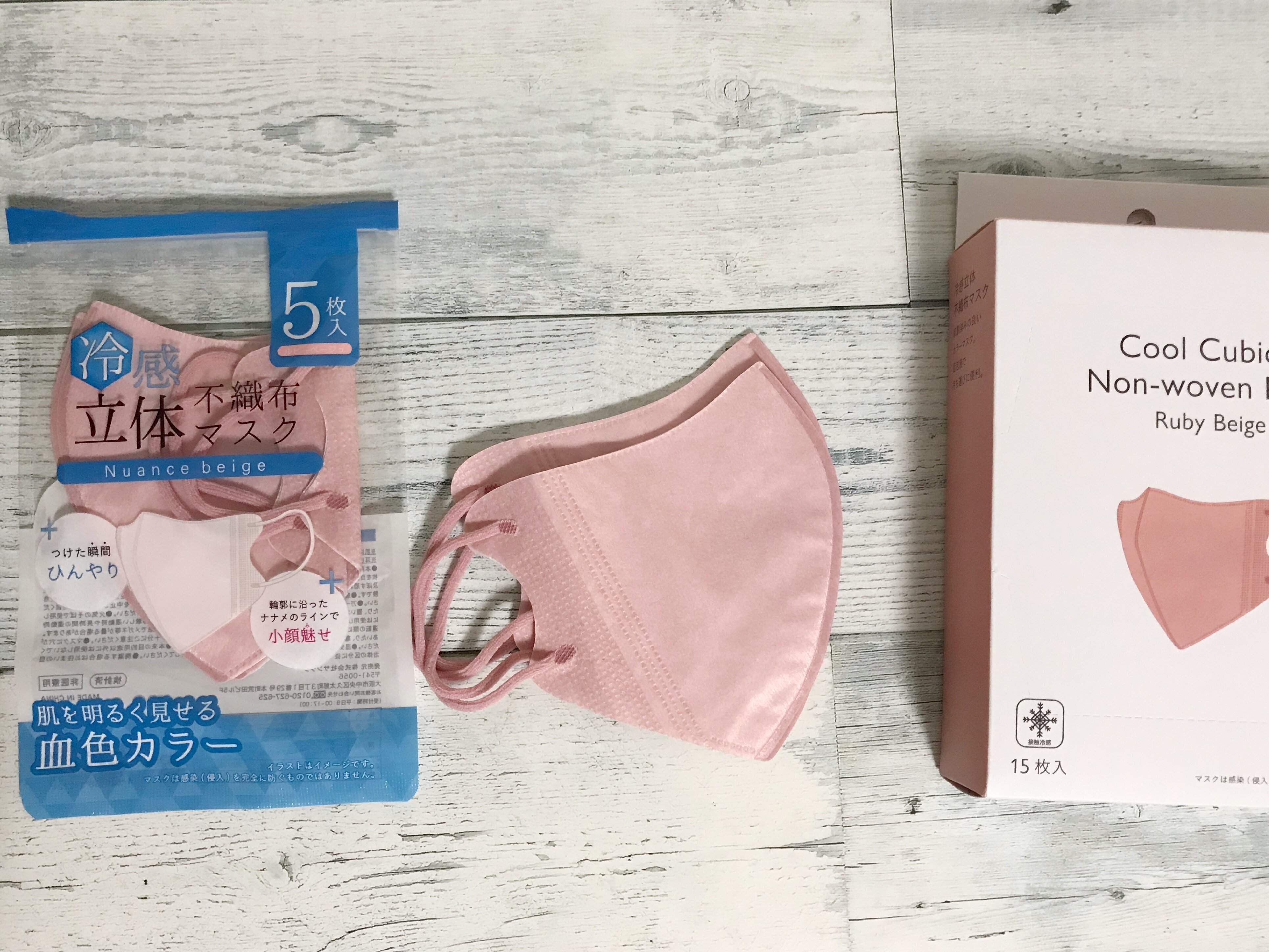 「冷感立体不織布マスク 15枚入り」(330円)は暑くなってきた今の時季におすすめのマスク。肌なじみの良いルビーベージュはくすみピンクに近い色味なので女性にピッタリ。
