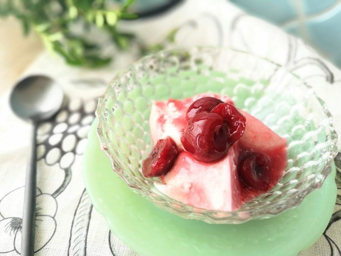 ミルキーでまったりとしたババロアのようなパンナコッタに、たっぷりのチェリーソースがのっていて、濃厚なミルクのコクあふれるパンナコッタと、キュンと酸味のあるチェリーソースが最強の組み合わせ。