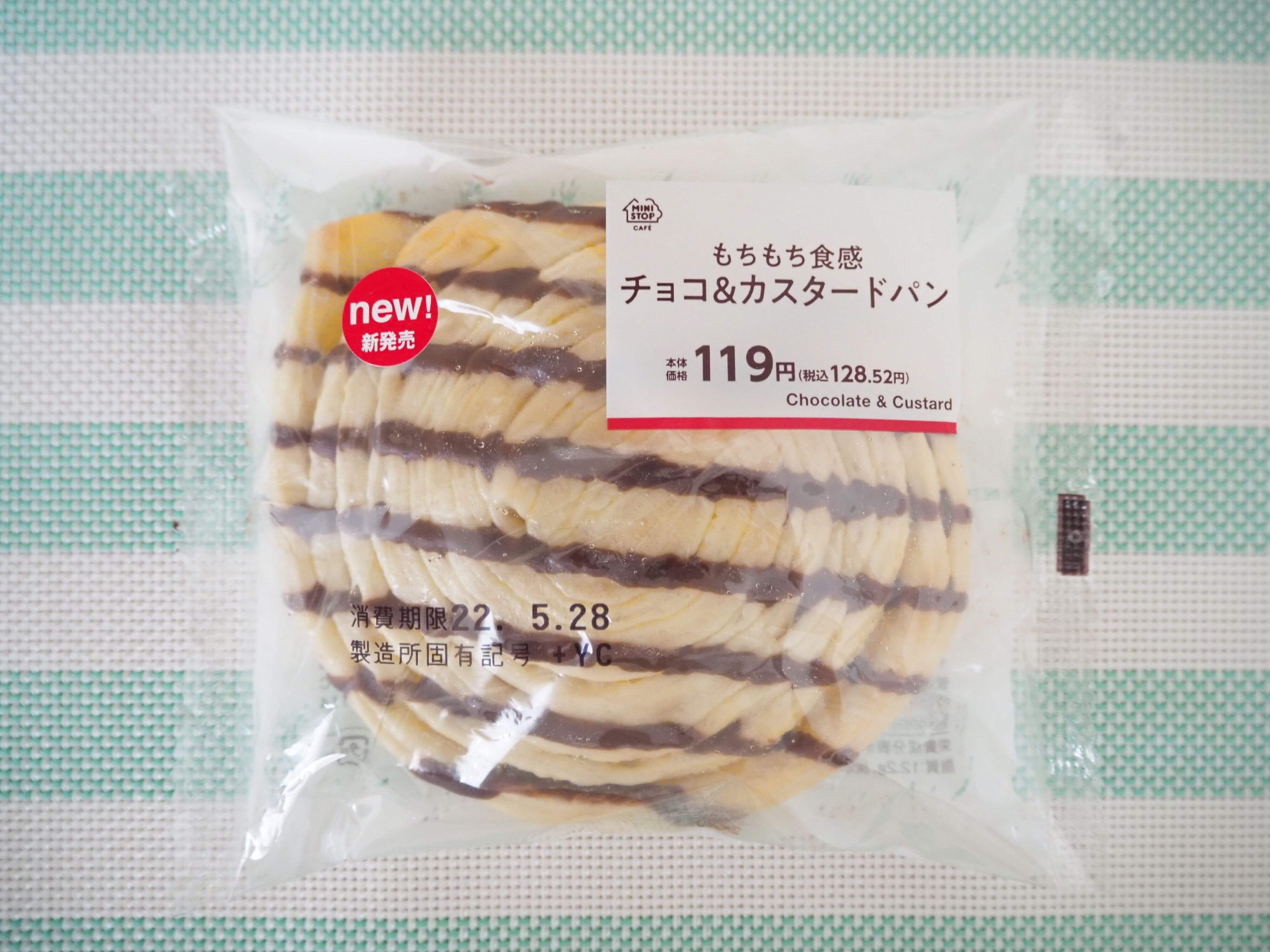 2022年5月24日にミニストップから発売された「もちもち食感チョコ&カスタードパン」は、その名の通り食感に特徴があるよう。本当にもちもちしているのか、確かめたいと思います。