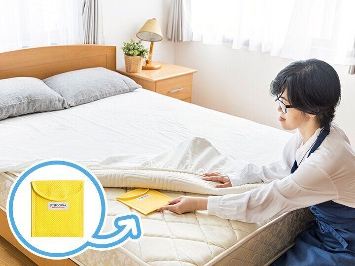 ベッドのダニを捕獲するときは、足元のほう、敷きパッドの下に置きましょう。約3カ月が取り替え時。