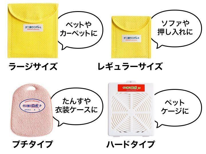 「ダニ捕りロボ」は使う場所、広さに応じて4タイプあります。