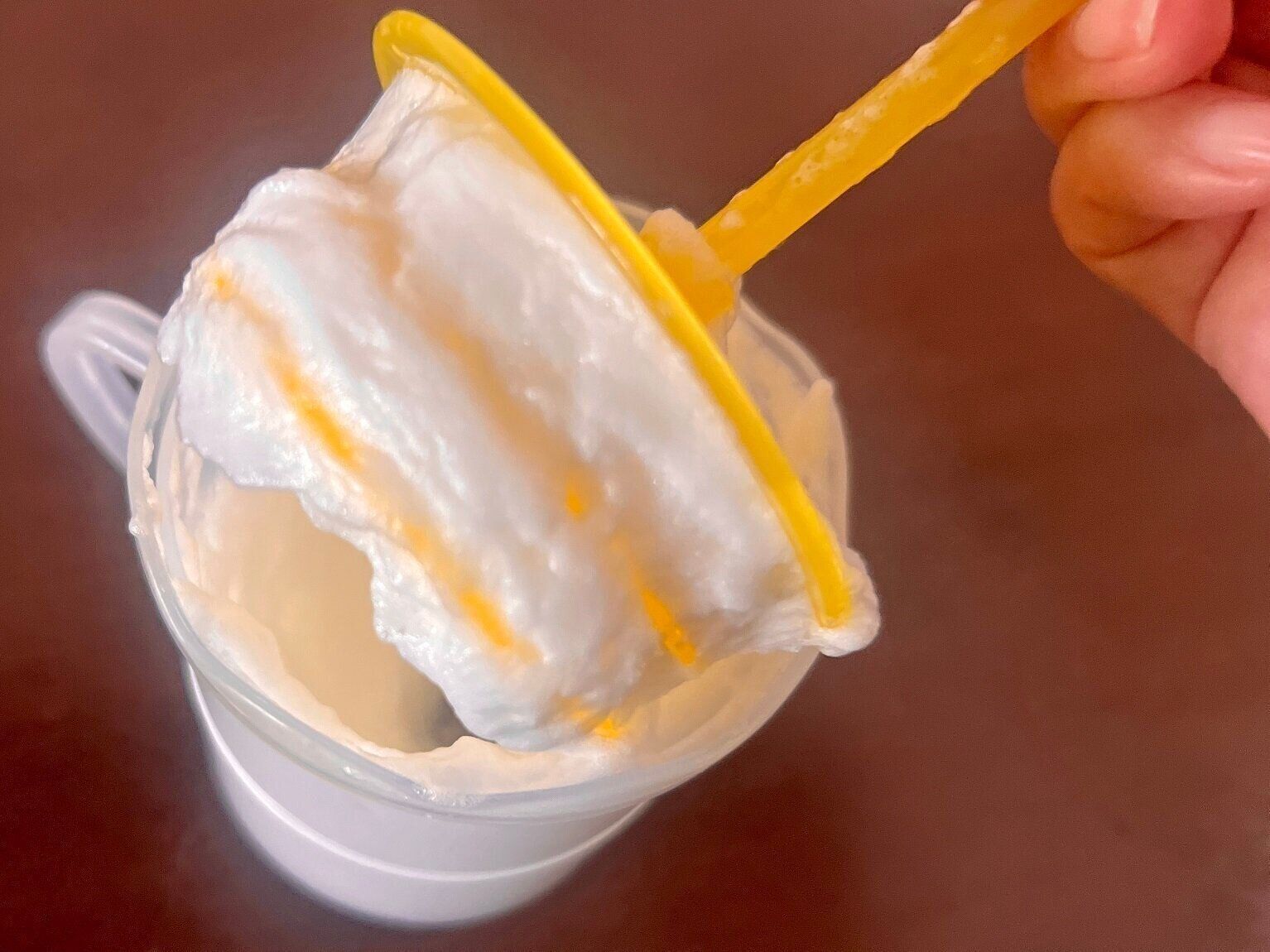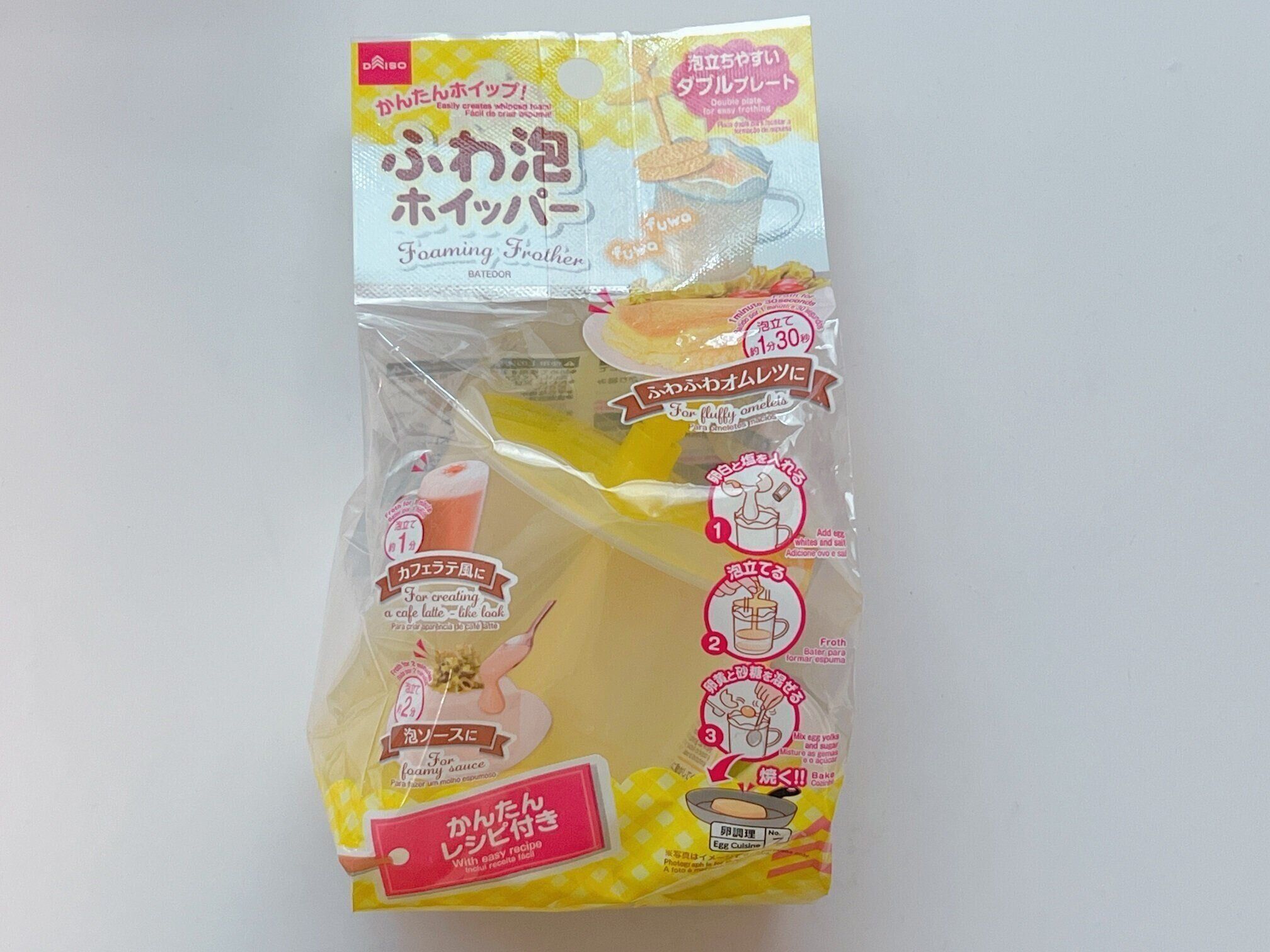 ダイソーの「ふわ泡ホイッパー」は一度に作れる量は少ないけれど、いろいろなものが手軽に泡立てられて便利。生クリームをホイップしたり、お料理で余った卵白をホイップして焼き、メレンゲお菓子にしたりとアレンジもたくさんなので、ぜひ試してみてください。