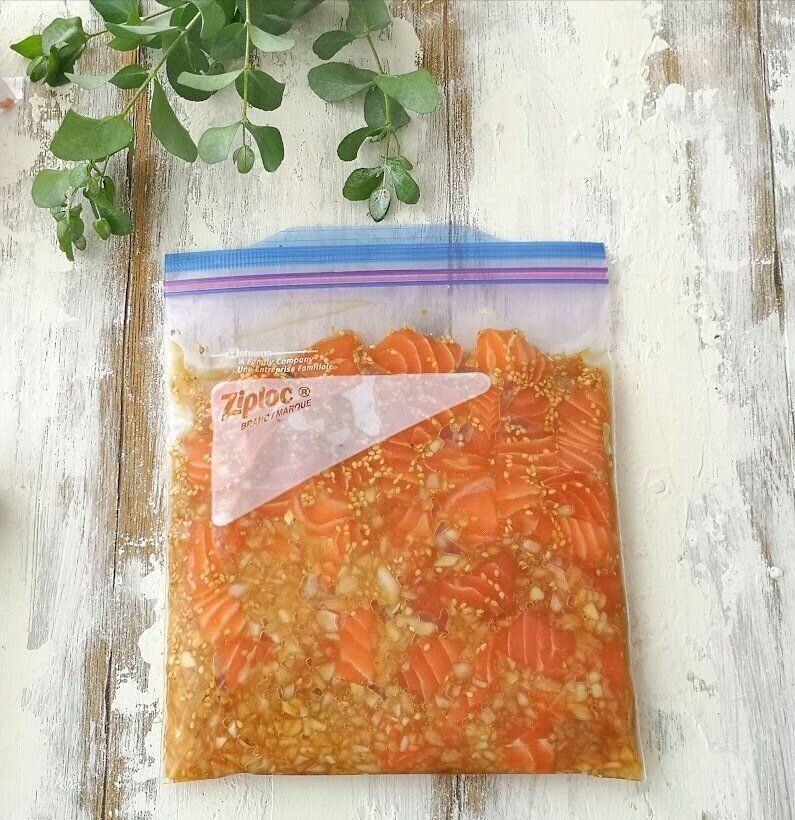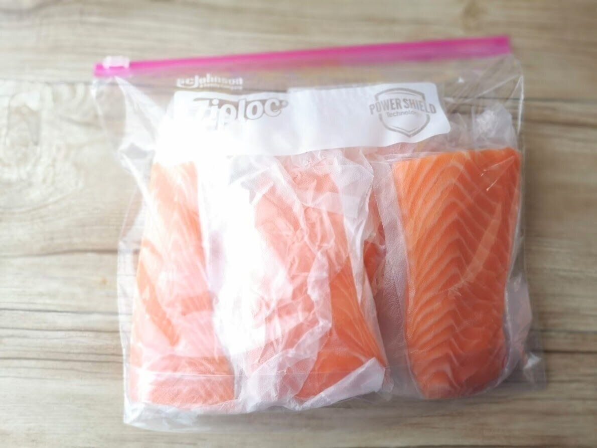 ブロックごとに切り出したサーモンは、食べきれない分は冷凍保存がオススメです。