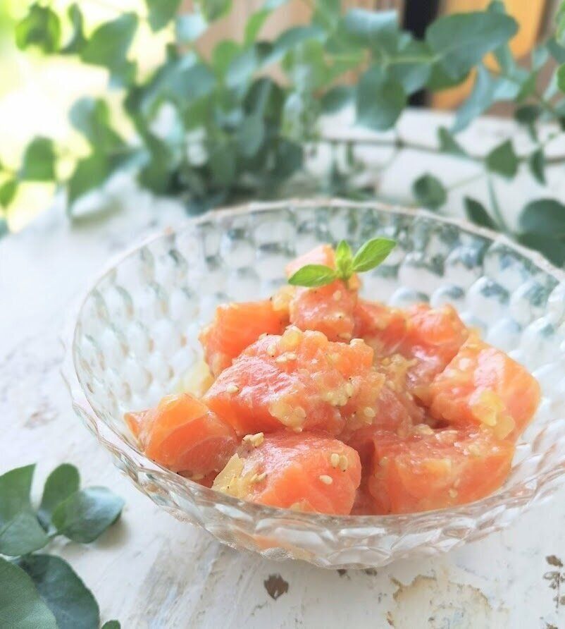 白ワインが進んじゃう一品なのはこれ!「サーモンマリネ」です。