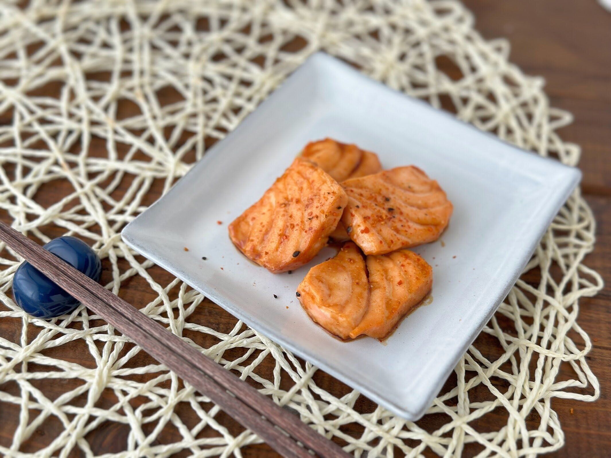 作り方は、醤油2:みりん1:酒1の割合で合わせタレを用意して、一度煮立ててアルコールを飛ばします。タレが冷めたら、サーモンを浸し、20分〜で食べごろです。