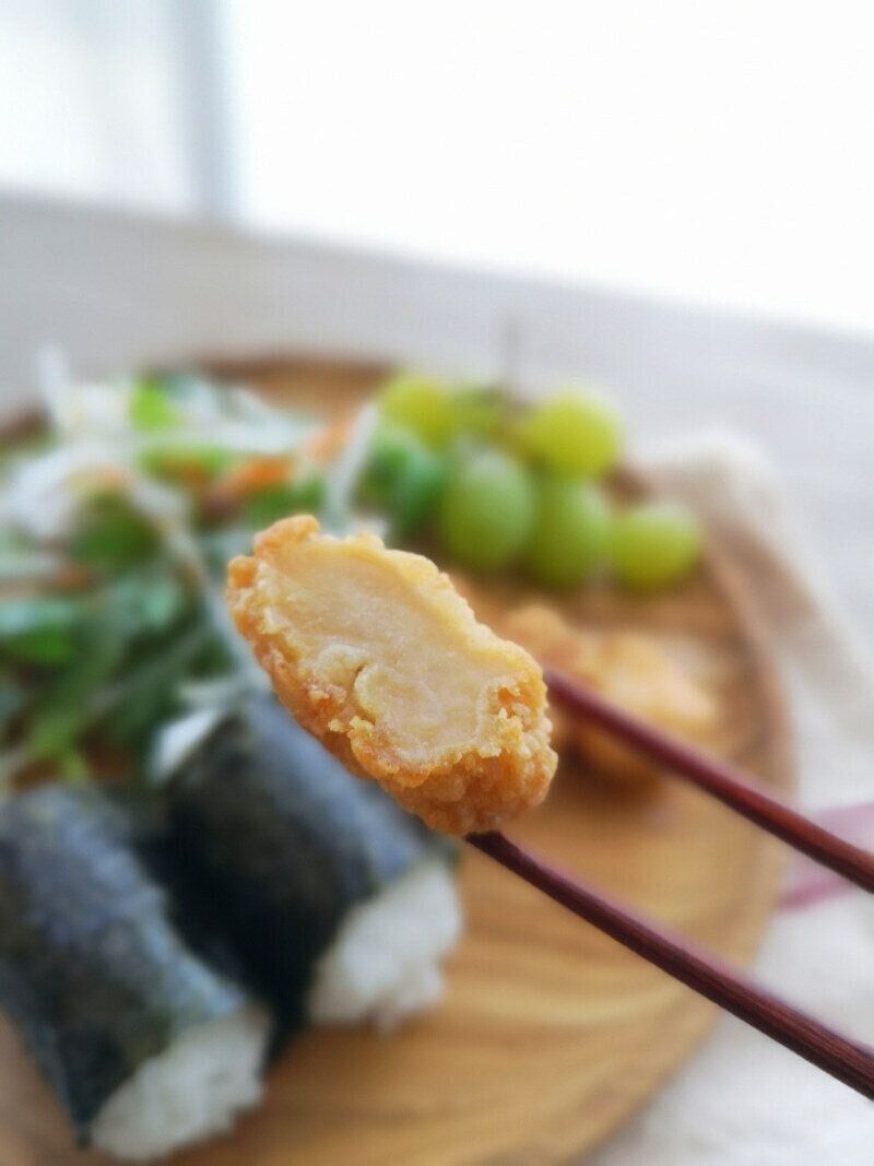 コンビニのホットスナックにあるような、フライドチキン風の味つけで、しっかり濃い目なので、子どもたちには大人気!お弁当に使っても味がぼやけないのでおいしく食べることができますね!