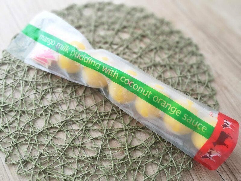 牧家の丸い風船プリン、限定フレーバーの「マンゴープリン」です。