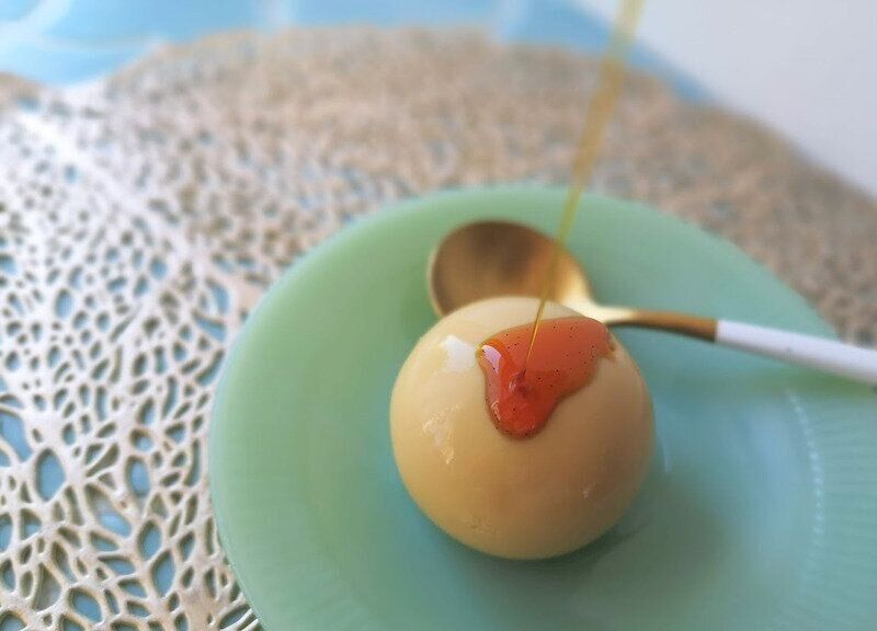 マンゴーの爽やかな甘さを感じる濃厚なプリンに、甘酸っぱいココナッツオレンジソースを合わせると、一気に南国の香りを感じる味わいに。