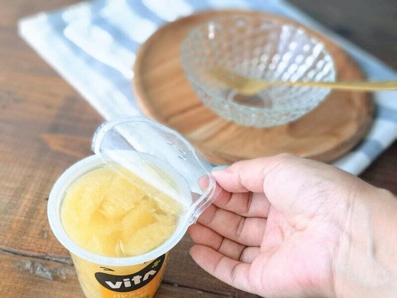 こちらは、フルーツがシロップ漬けになり、カップに入った商品です。