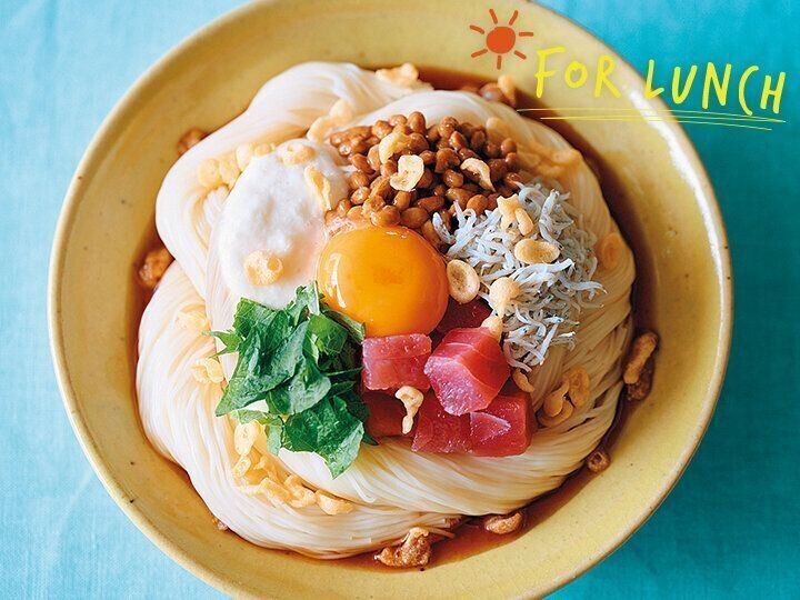月曜は肉、火曜は魚など献立をルーティン化するおうちが増えています。ぜひそのルーティンにそうめんを取り入れましょう! 大人はもちろん、小さな子どもも大好きだから、もりもり食べられるし、トッピングやつゆを変えるだけで新たなおいしさを発見できるのも魅力。昼食にも夕食にもぴったりです。