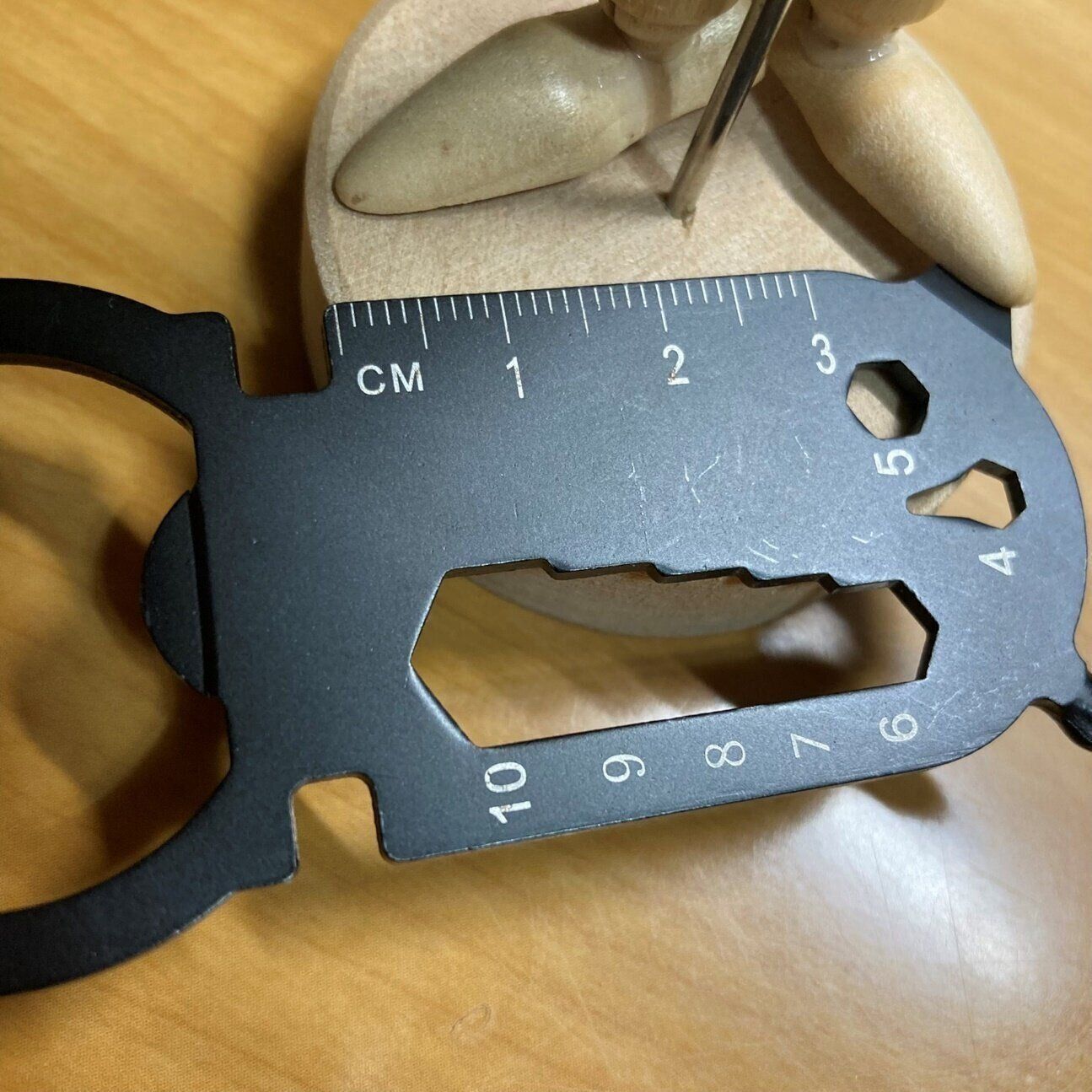 定規といっても、そもそも本体のサイズが小さいので3cmしかありません。でも、ちょっとした物の長さや厚みくらいは図れます。小さくても、手元に定規があると便利ですな。