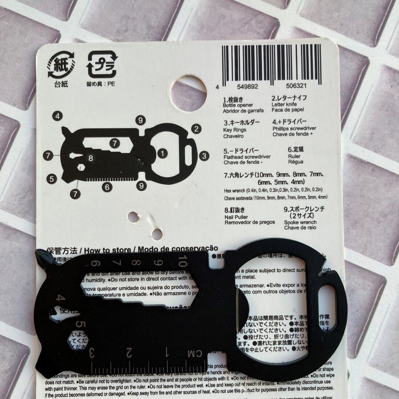 今回ご紹介するのは、9つの便利ツールがひとつになった「マルチツール(キーホルダー型)」というアイテム。価格は110円です。