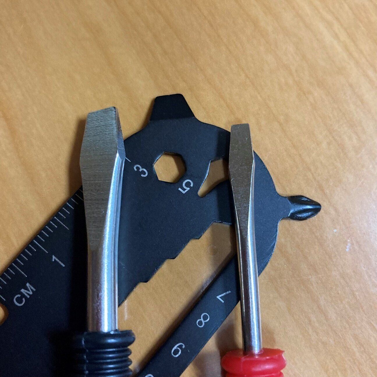 マイナスドライバーも普通に使えます。でも素材が弱いので、固く締まったネジには使えないように思います。あくまで緊急用としてですね。