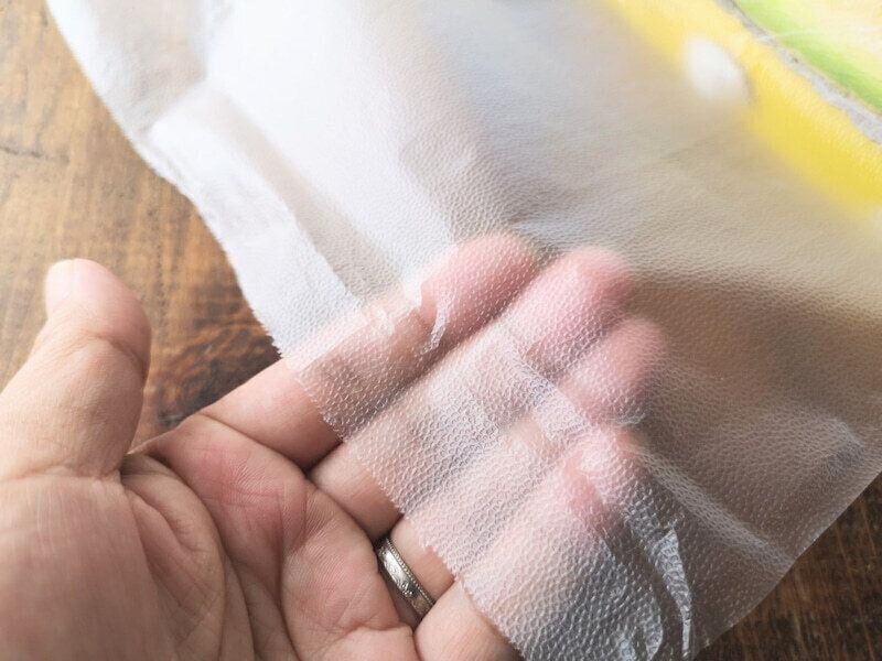 一般的な食品ラップと比較すると、柔らかめなラップで、適度な伸縮性があります。