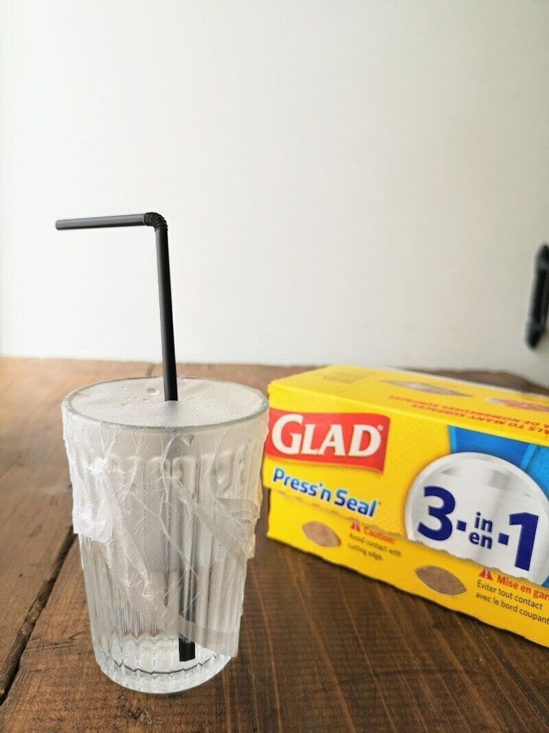 しっかりした密着性があり、剥がれにくいので、コップに入れた水もプレスアンドシールでフタをすると、傾けてもこぼれません。